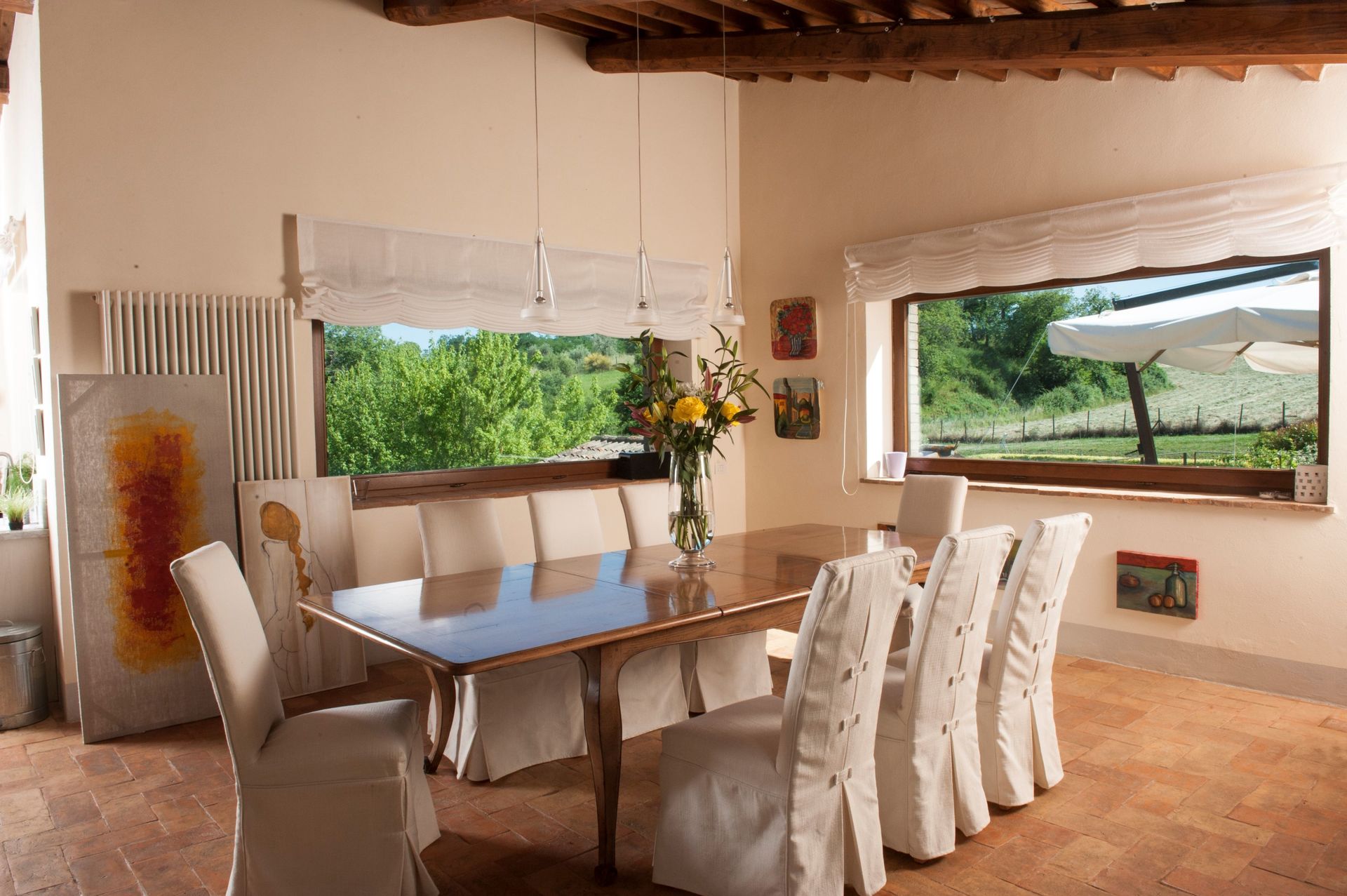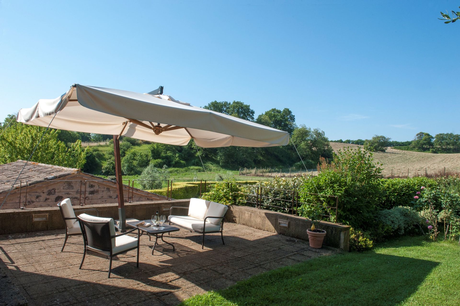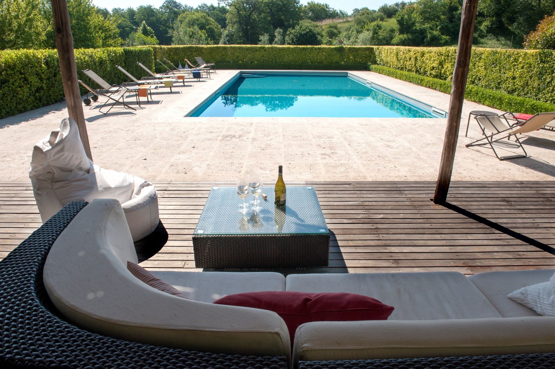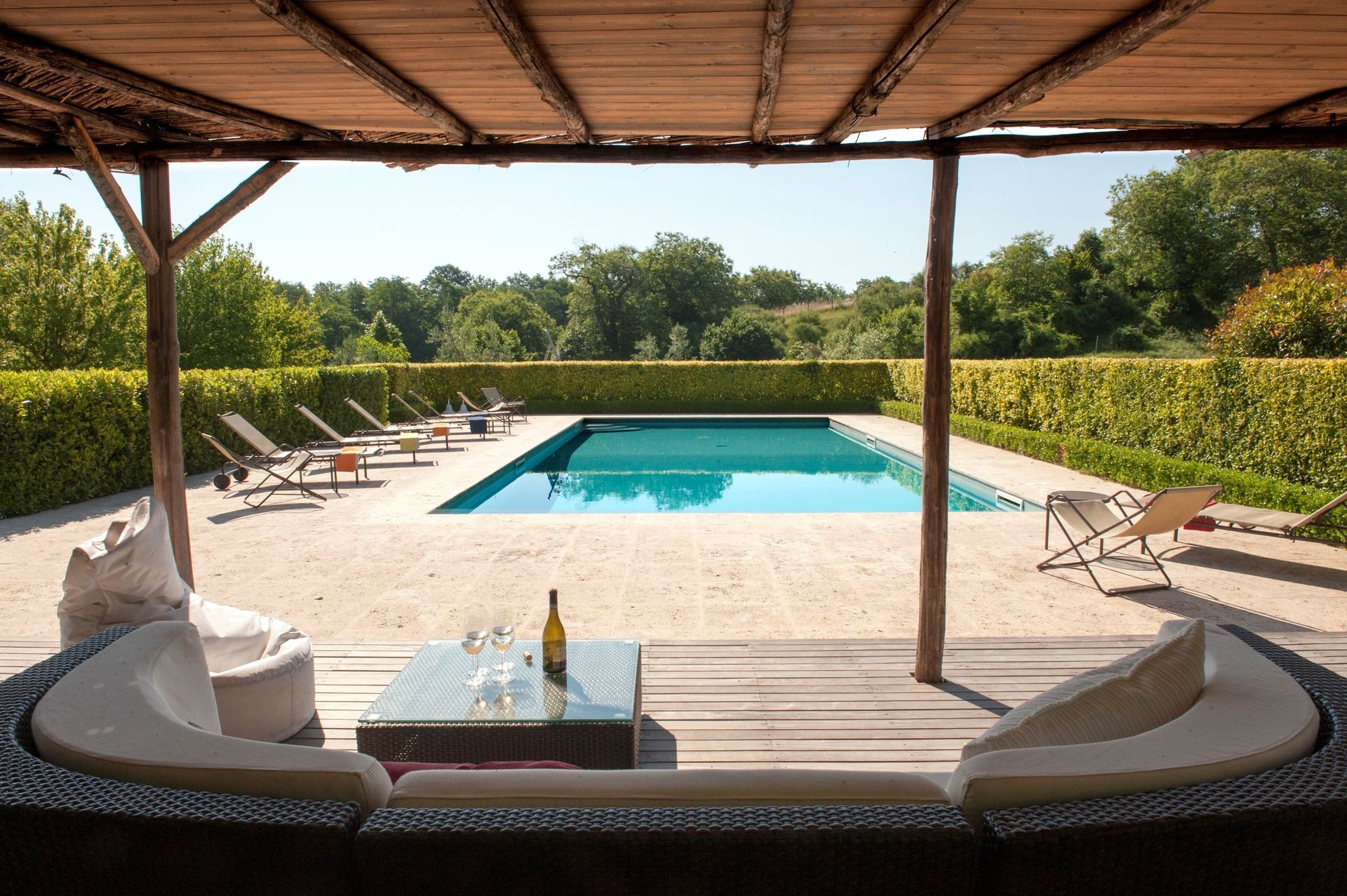The house and location are stunning. Met the home owner a couple of times as she came to check that everything was ok - very caring and friendly. Gardeners and cleaning staff were also very pleasant and did their best to do their work without being intrusive at all. Pool was amazing, very private and quiet and a great way to relax either first thing in the morning with a coffee or at the end of a long day touring the surrounding regions. Relatively short drive to Tuscany, Lazio, etc. Would happily stay in this gorgeous property again. I would give it 6 stars if possible!