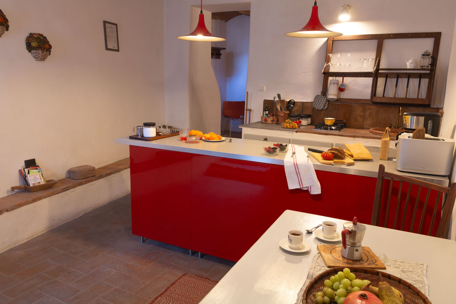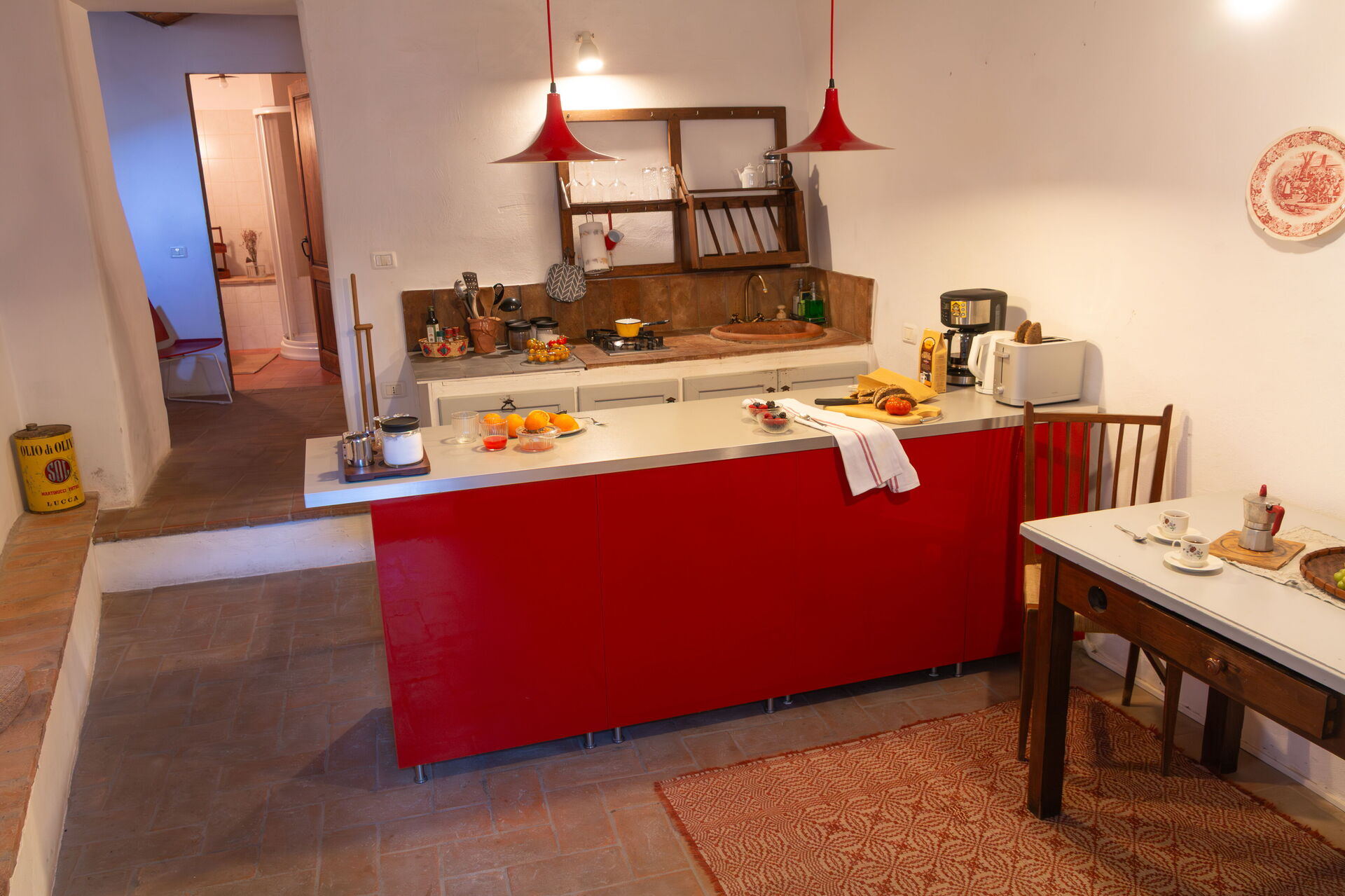 Entirely private apartment, with independent entrance, this large space used to be the barns and stables of the house above, Casa di Vignolo (the vineyard's workers) and located in the main piazza of this little town.