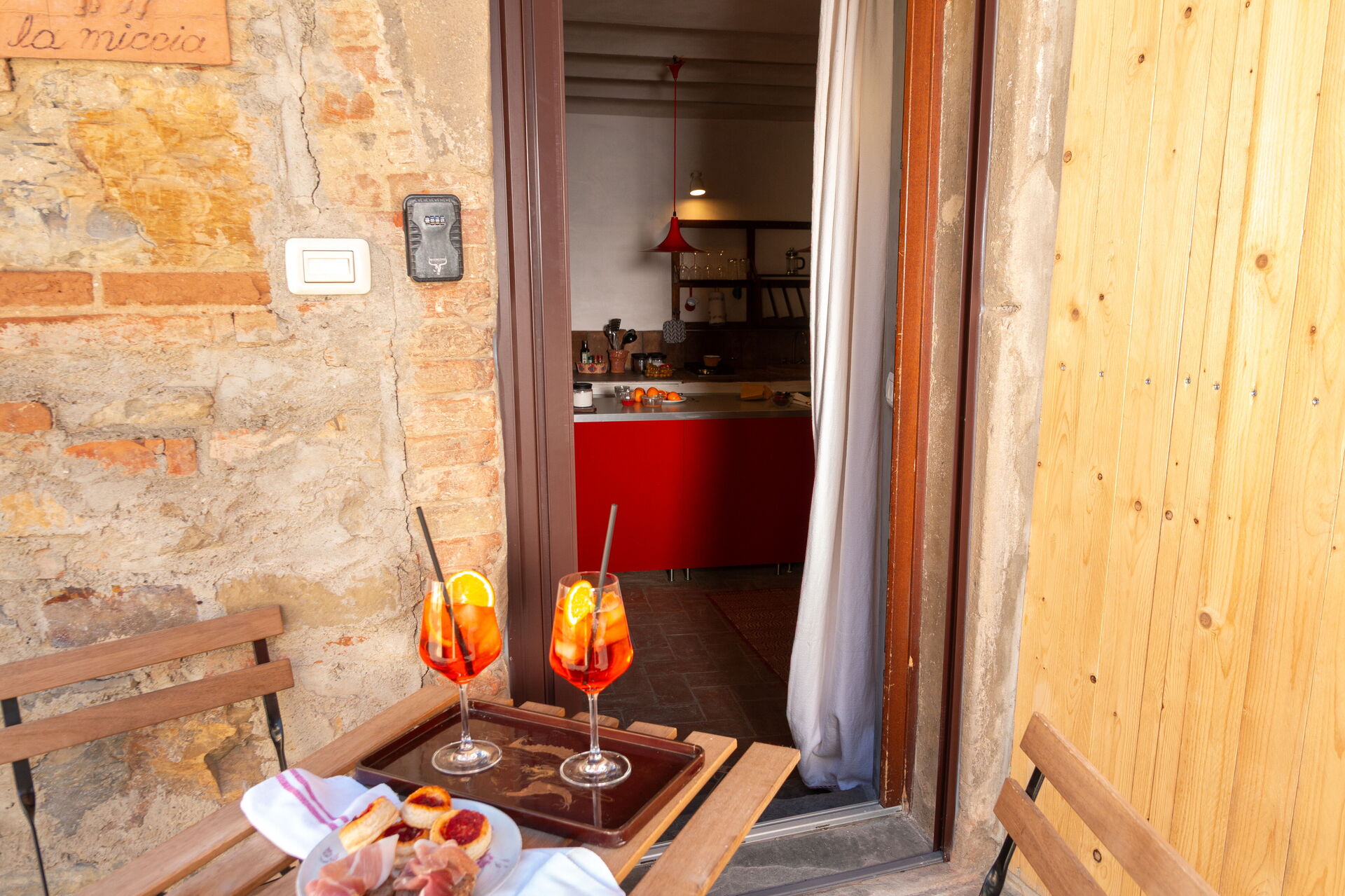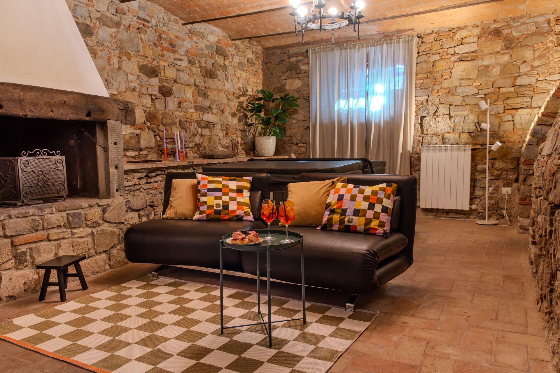LA MICCIA is a beautiful centuries' old apartment that will enchant you with its local traditional features: the stone walls all over the place, the original ceilings in red bricks, original pavements in "cotto" toscano,... you will be captured by the fusion of antique and modern style, like the hot tub in the living room!!!