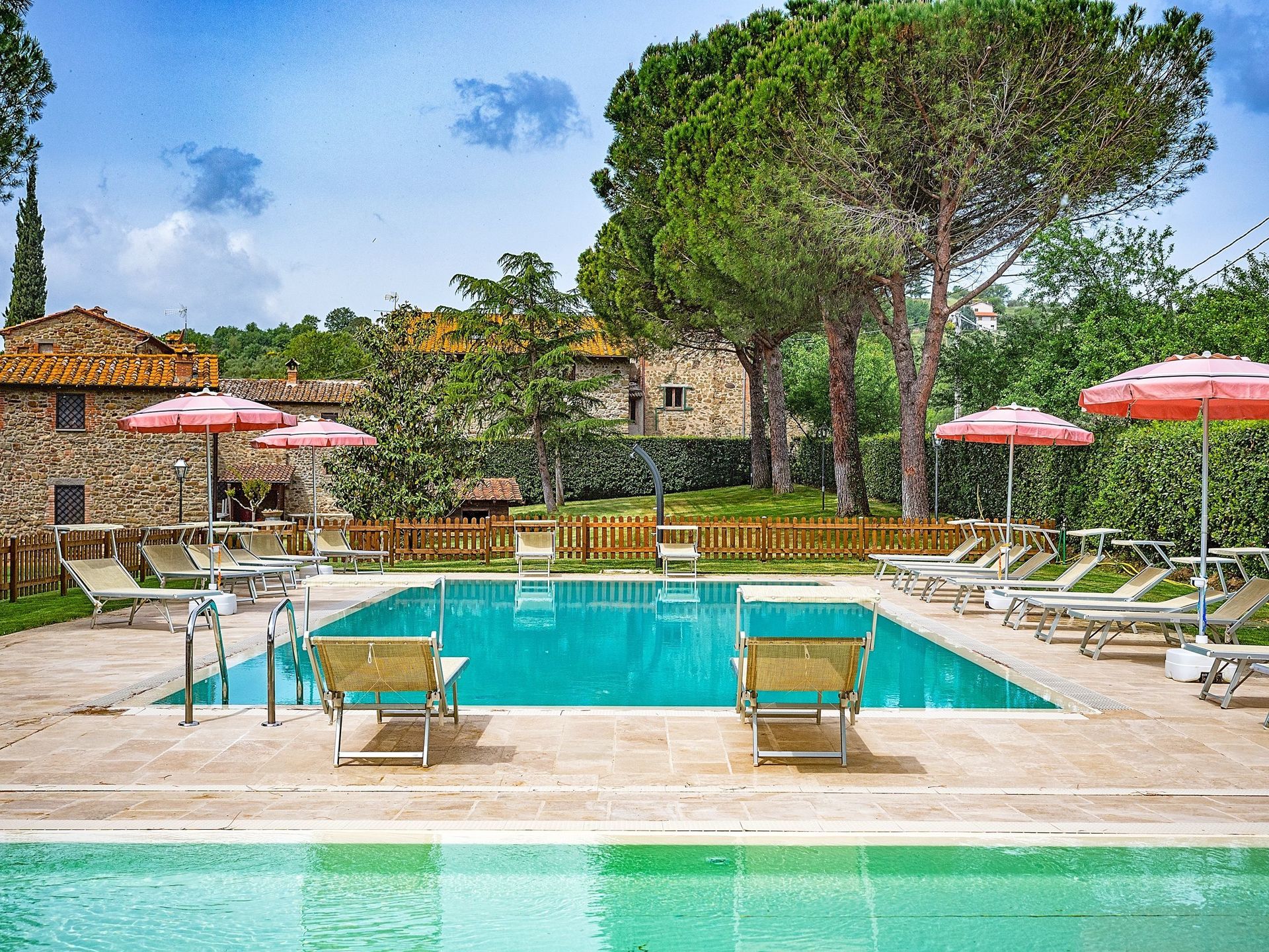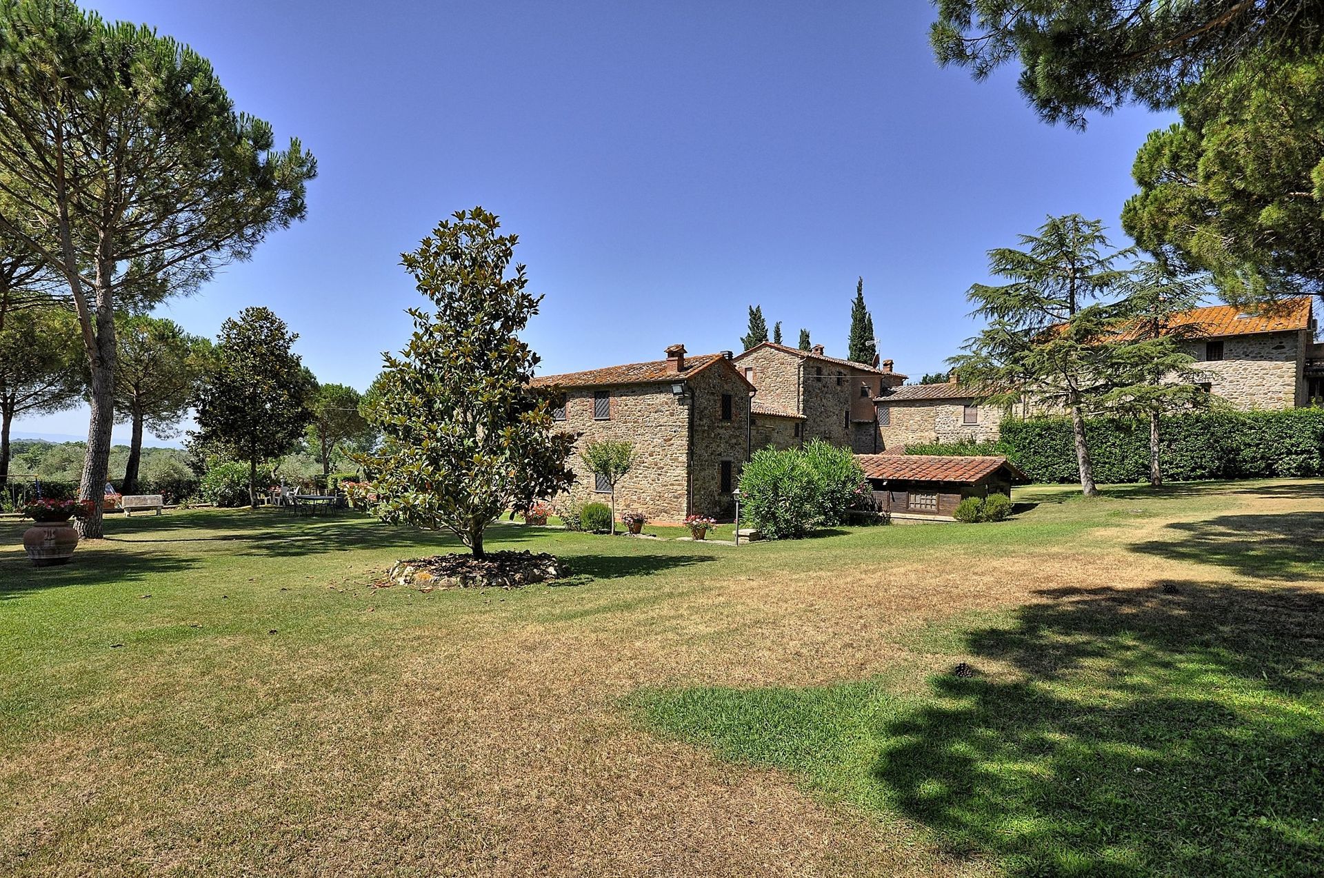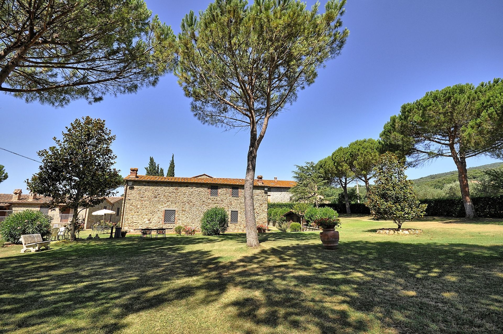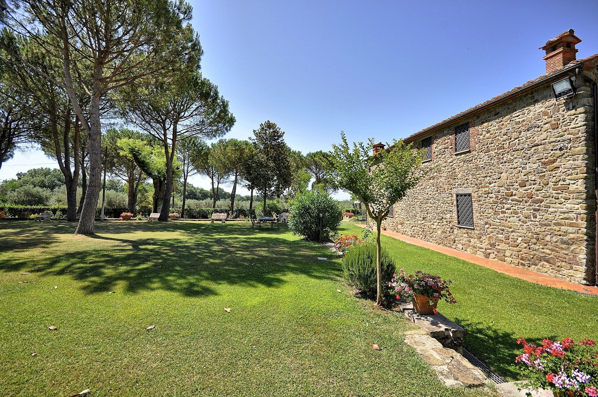 Apartment which is spread over two levels with small area in the garden furnished with a table, chairs and sun umbrella