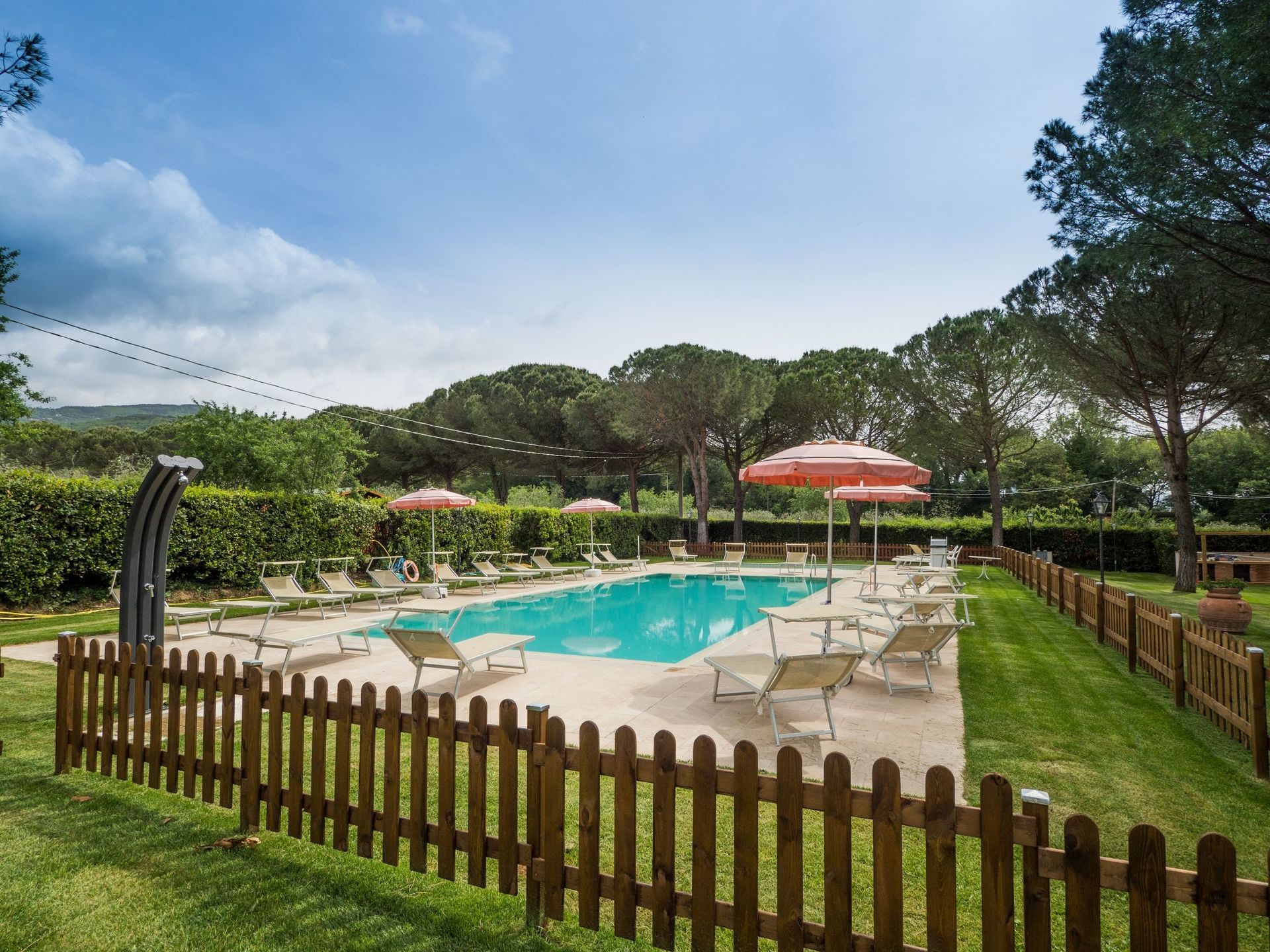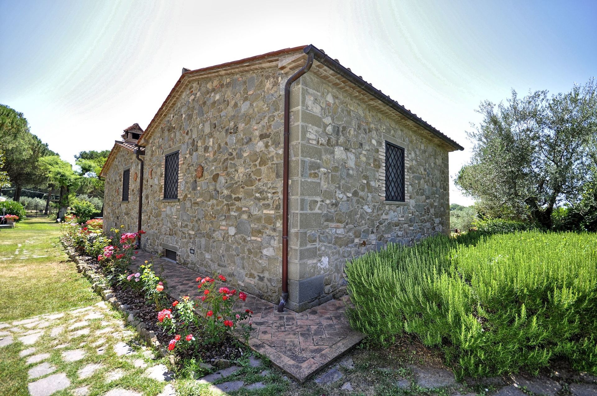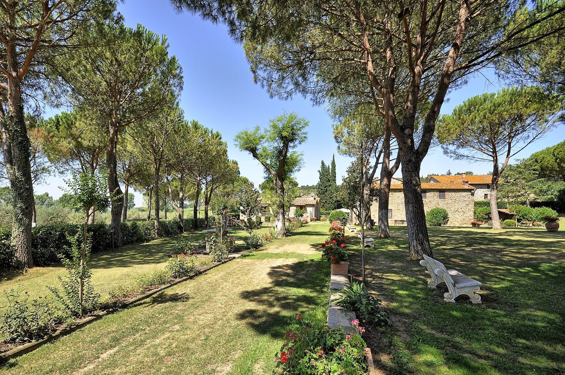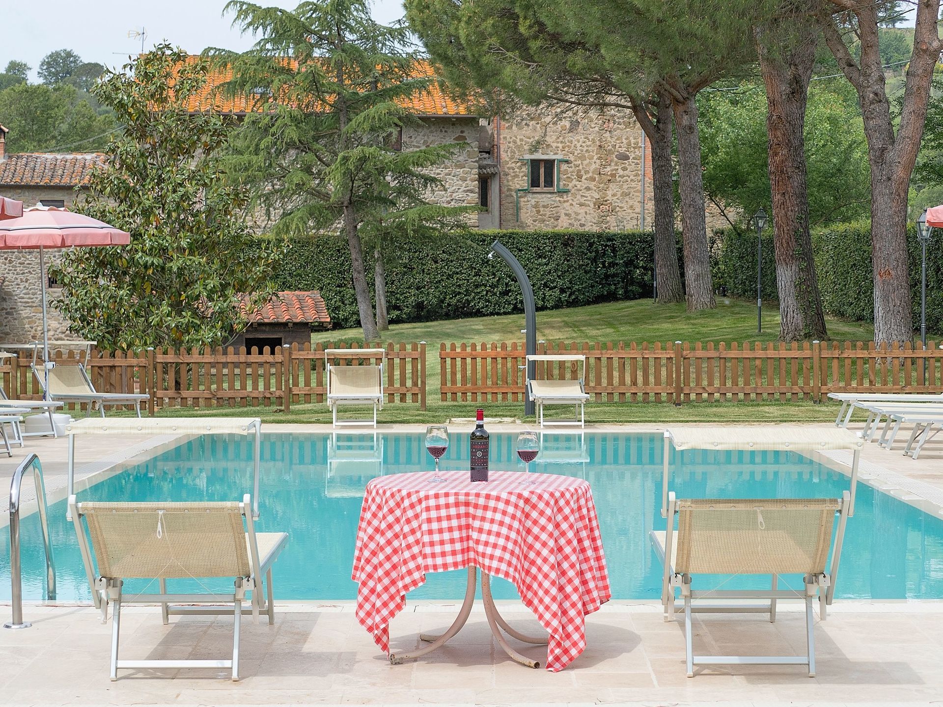 Apartment which is spread over two levels with small area in the garden furnished with a table, chairs and sun umbrella
