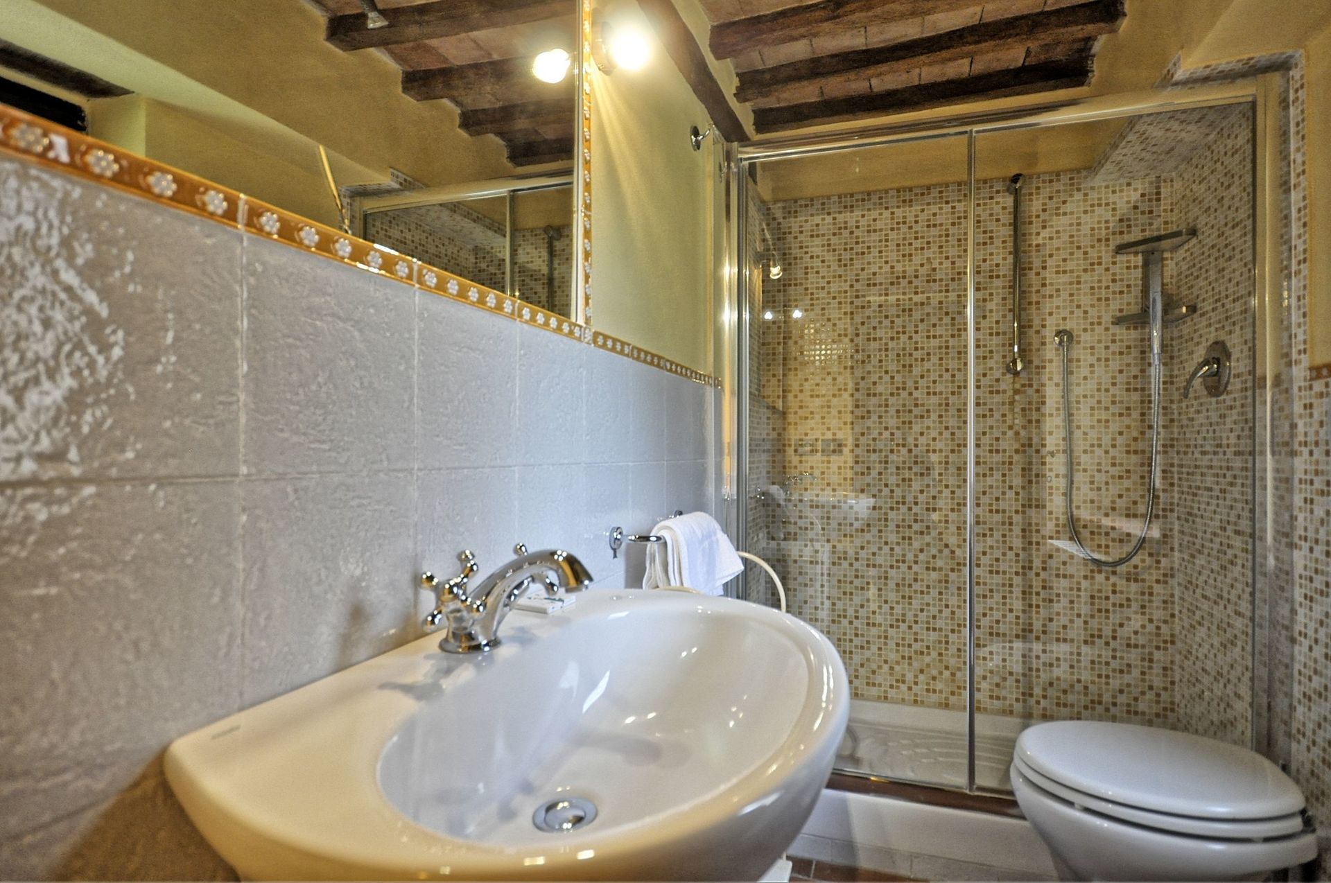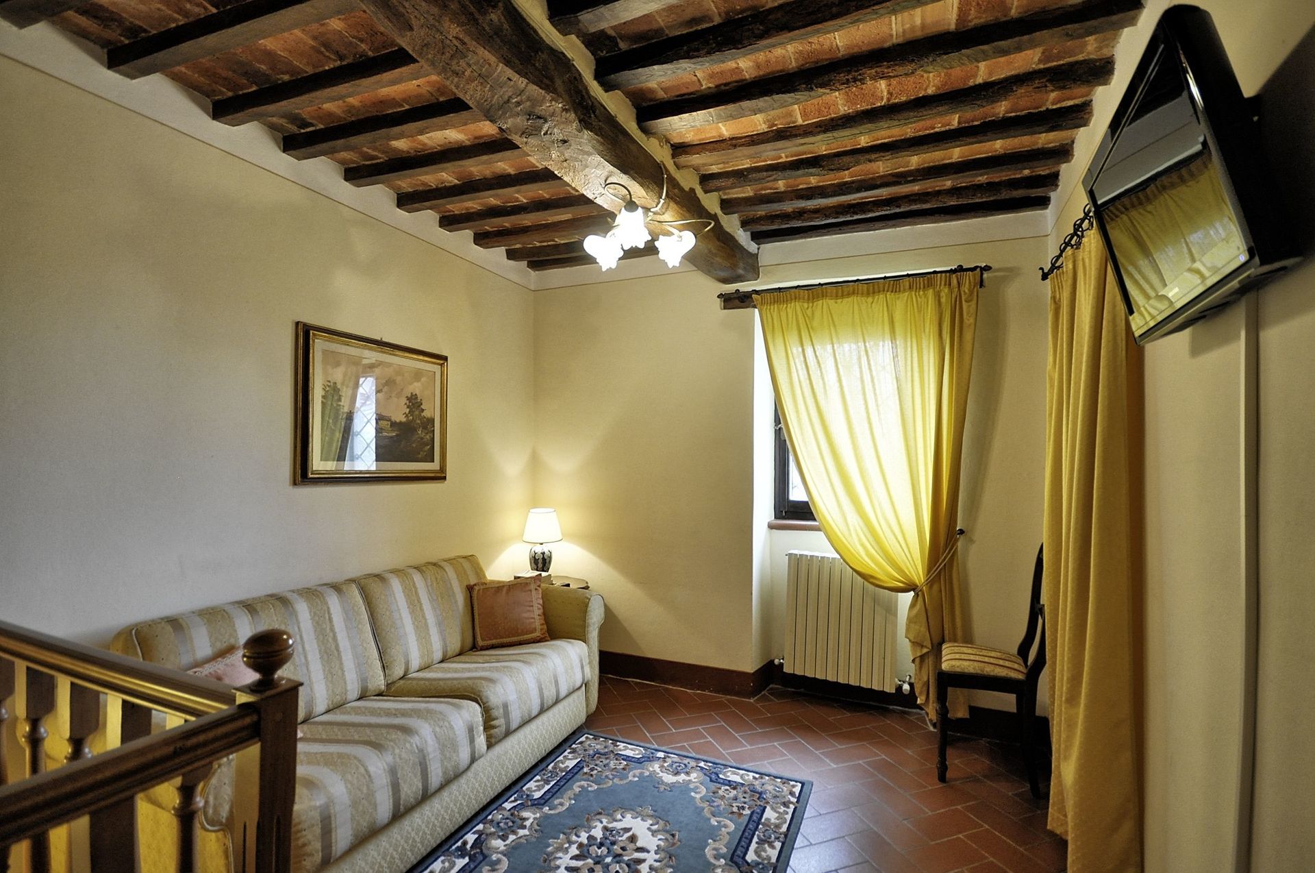 First Floor: a spiral staircase leads to the upper floor with living area, sofa bed (double size), double bedroom and bathroom with shower