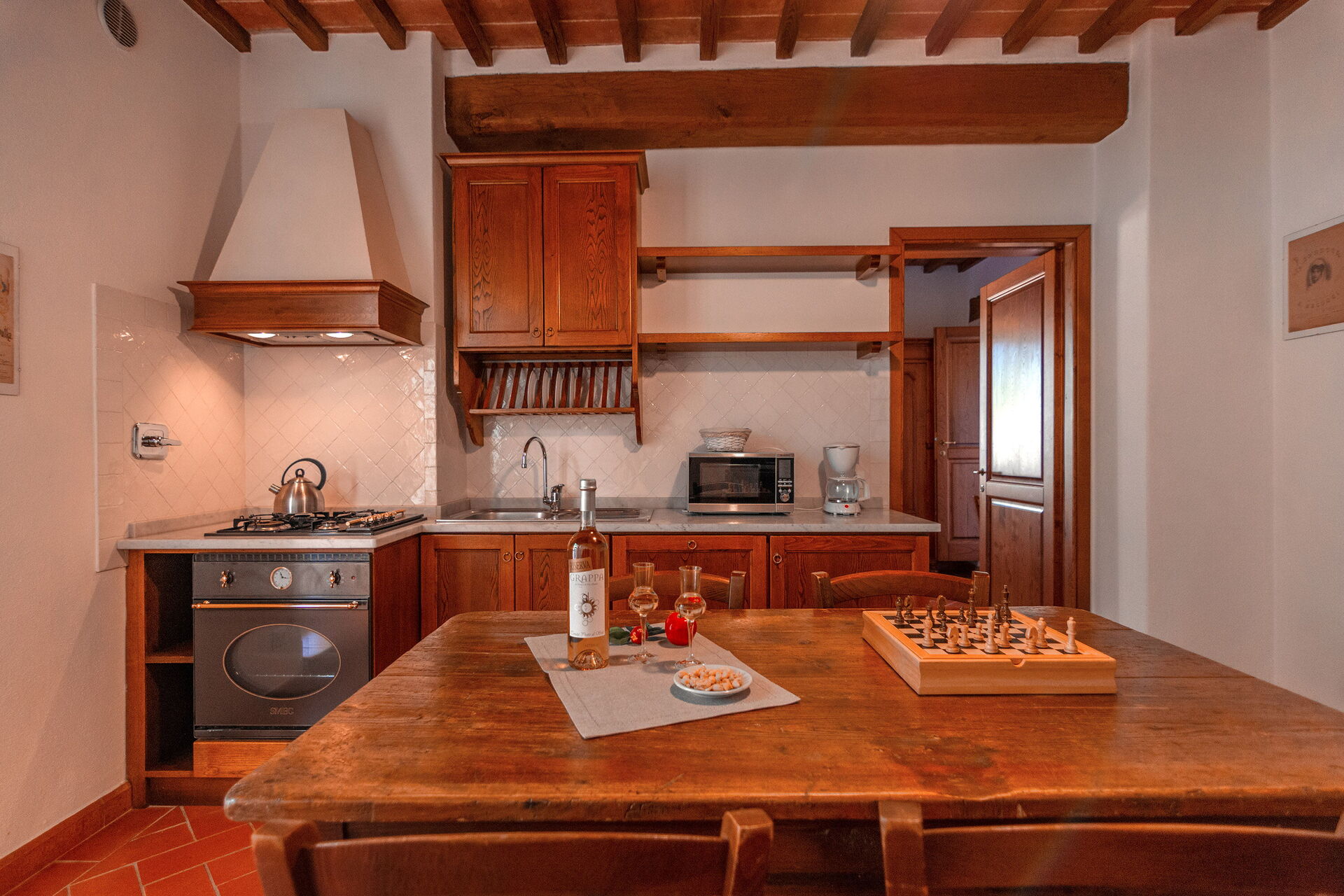 Når I ankommer, vil I blive modtaget af ejeren eller repræsentanten og I vil finde en fin ren og velholdt ejendom med udsigt over bakkerne ideel til en behagelig ferie i Toscana. Til jeres store glæde vil I finde en privat pool, hvor I kan køle ned, mens I nyder en dejlig kold drik efter en hektisk dag med sightseeing. Udenfor vil I finde barbecue og legeplads.