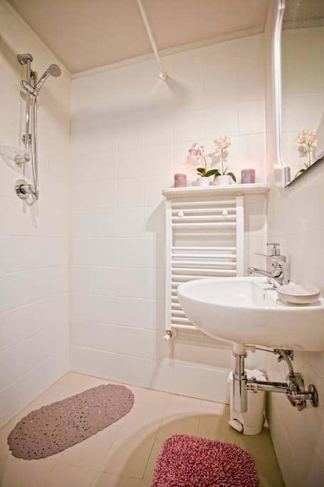Badeværelse: vask, wc, bidet, bruser, hårtørrer, WIFI internet.