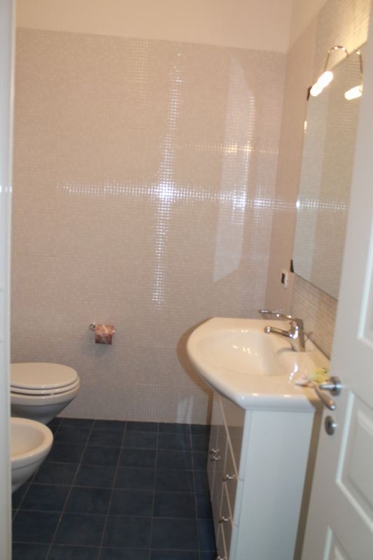 Badeværelse: vask, wc, bidet, bruser.