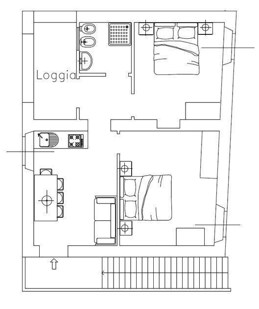 Omfattende: køkken - stue, 2 soveværelser, badeværelse.