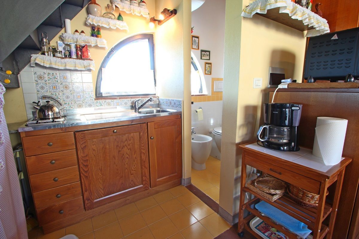 Here is an open space consisting of a dining area, sofa bed for two persons, TV with foreign channels, a small kitchen with two electric cooking rings, dishwasher, American coffee machine and electrical oven to warm up dishes.