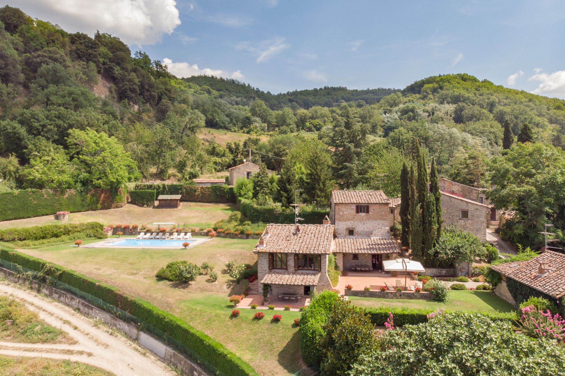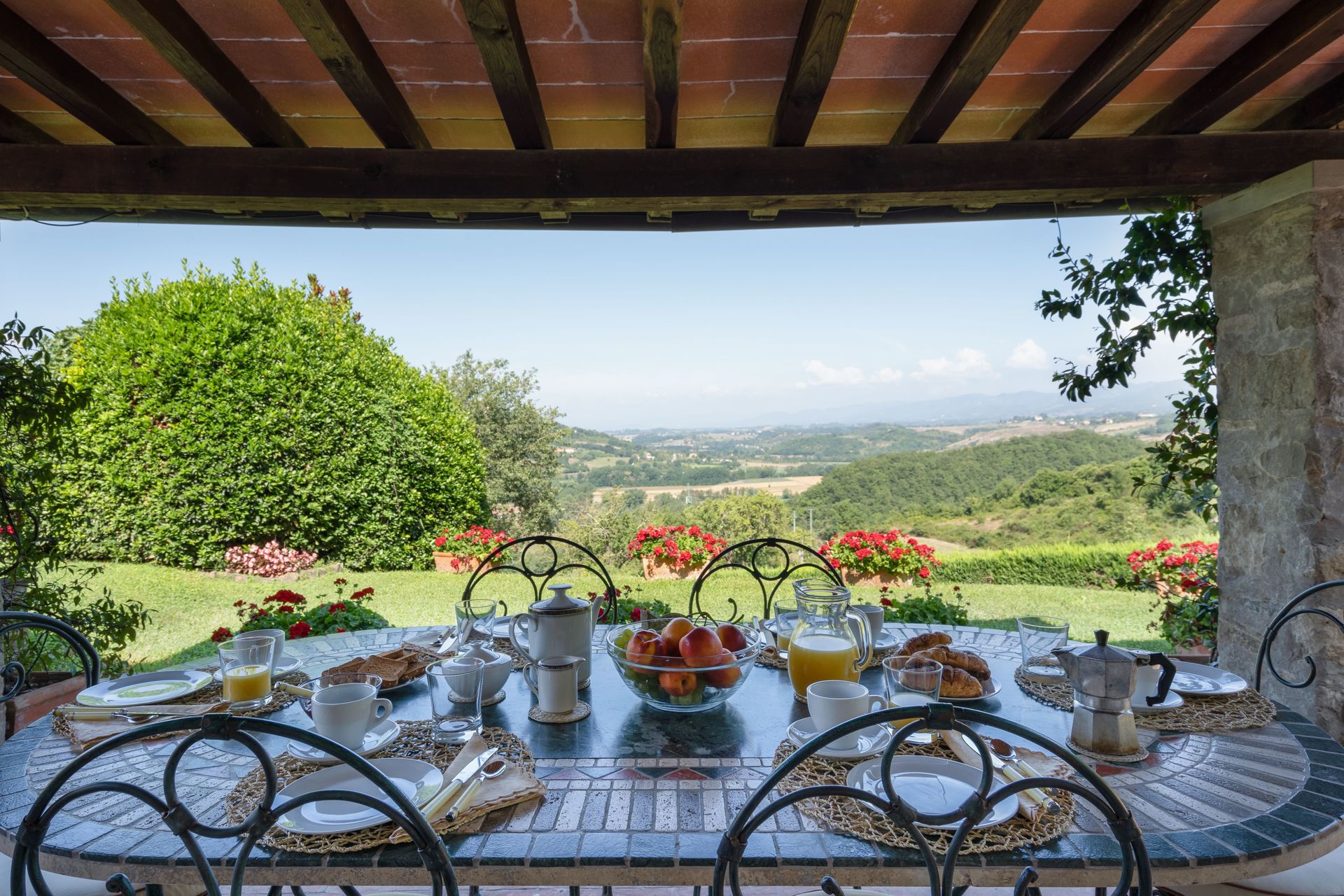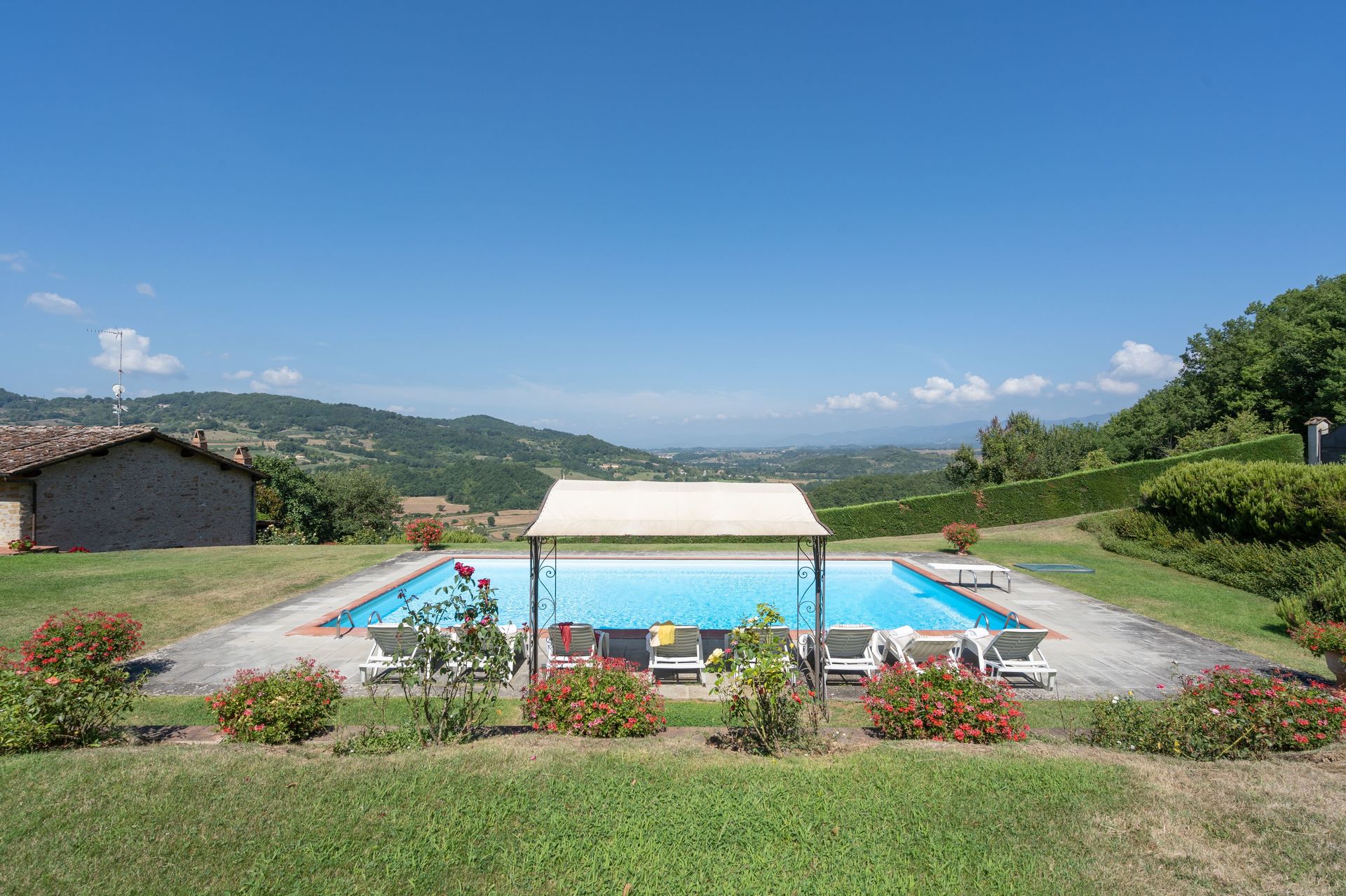 Når I ankommer, vil I blive modtaget af ejeren eller repræsentanten og I vil finde en skøn ren og velholdt ejendom med udsigt over bakkerne perfekt til en afslappende ferie i Toscana. Efter en travl dag med shopping, er det dejligt at nyde lidt tid med venner og familie ved kanten af poolen med et glas vin - det er en perfekt måde at slappe af på sidst på dagen. Udendørs vil I finde gårdhave og barbecue. At nyde et måltid med venner og familie er en kæmpe del af den toskanske kultur. Benyt det velekviperede køkken til madlavning med lokale produkter, når du er på ferie. Køkkenet indeholder kaffemaskine, mikroovn, brødrister, komfur og køleskab, samt, masser af service og bestik til op til ti personer. Spis 'al fresco' som en ægte toskaner. Den fuldt møblerede gårdhave er det ideele sted for at nyde sit måltid, familien og det fine toskanske vejr.
