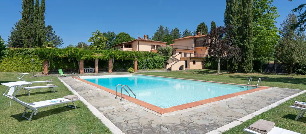 Beautiful and large villa on two floors, immersed in the green Mugello valley, a few kilometers from Florence, in a quiet location overlooking the surrounding countryside. The spacious interiors are well kept and comfortably furnished. The villa offers peace and quiet although on one side steps a secondary road and is surrounded by a beautiful fenced garden of 3.000sqm. equipped with a large pool for exclusive use of the guests (18m. x 8m. prof. 120 / 200cm.) with adjacent loggia of 75sqm. and changing room with shower. The property also has another equipped loggia for outdoor dining with barbecue. Wi-Fi free. Private parking in the property. The house is located at 6km. from "Borgo San Lorenzo", at 35km. from Florence, 23km. from the "Barberino Designer Outlet" (over 100 stores of major brands of Italian and international fashion) and Lake "Bilancino" (canoeing, sailing, windsurfing), at 19km. the "Poggio dei Medici Golf Club", 10km away. riding stables.
