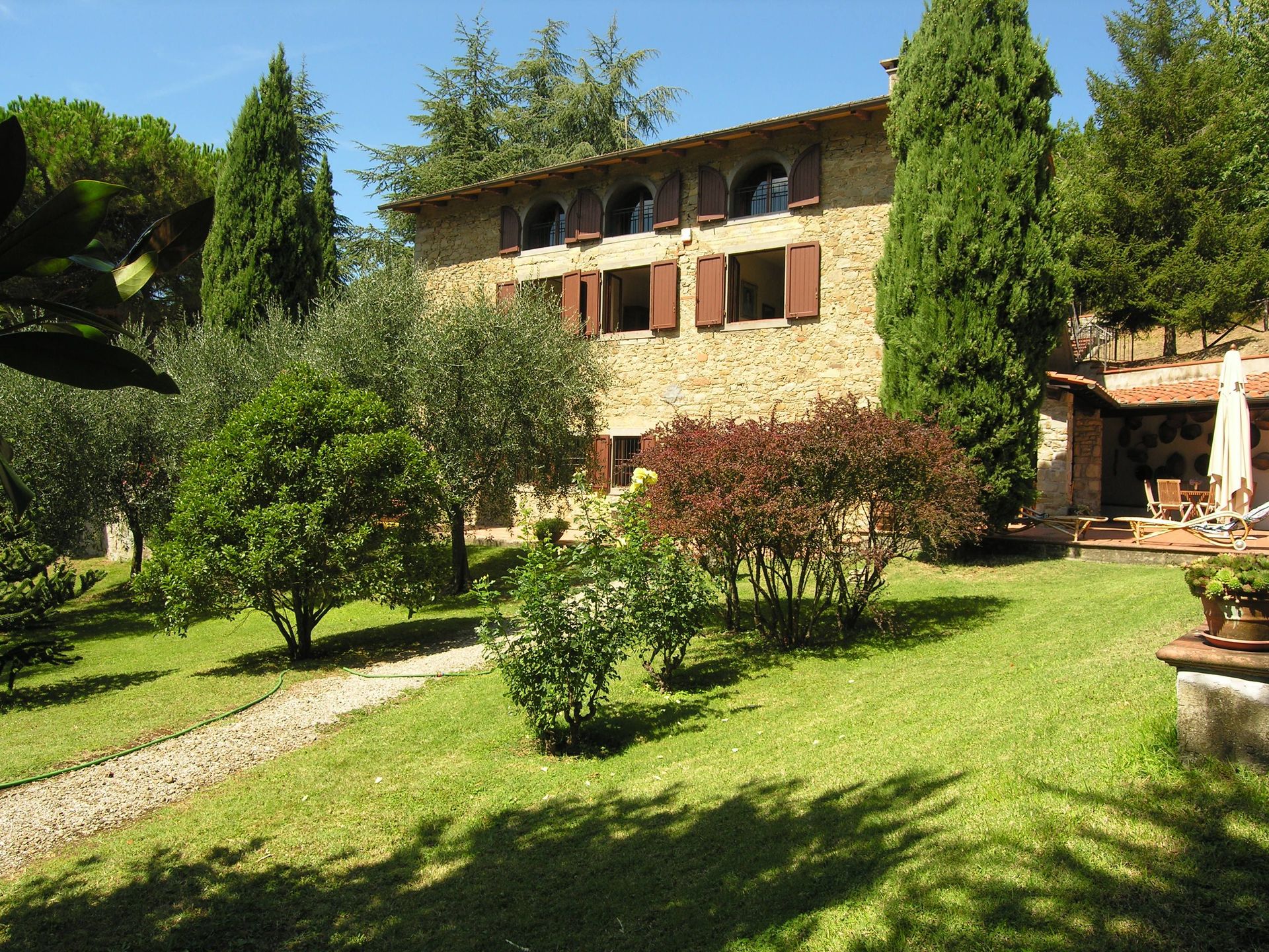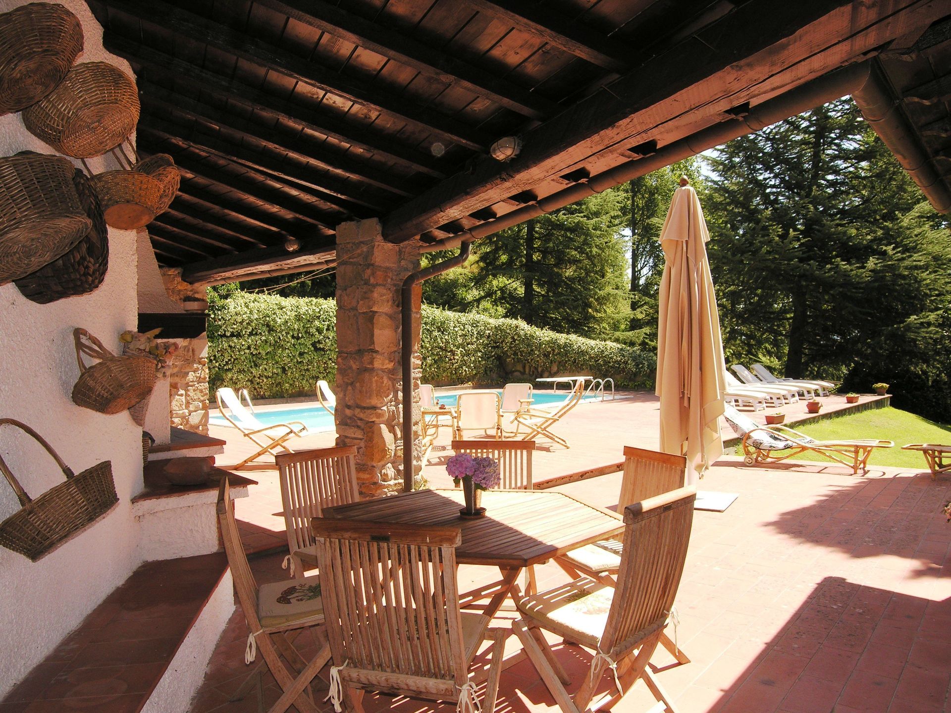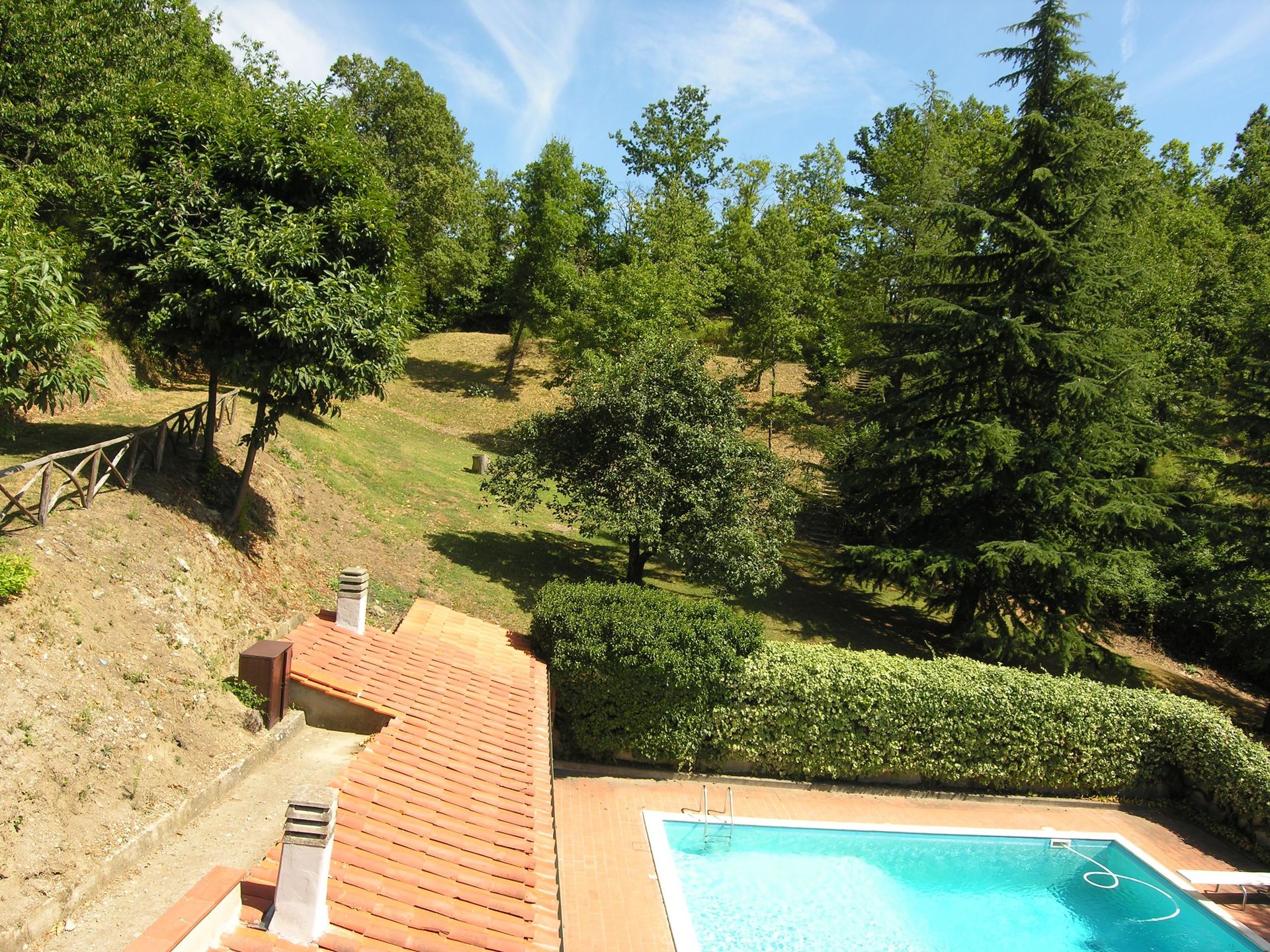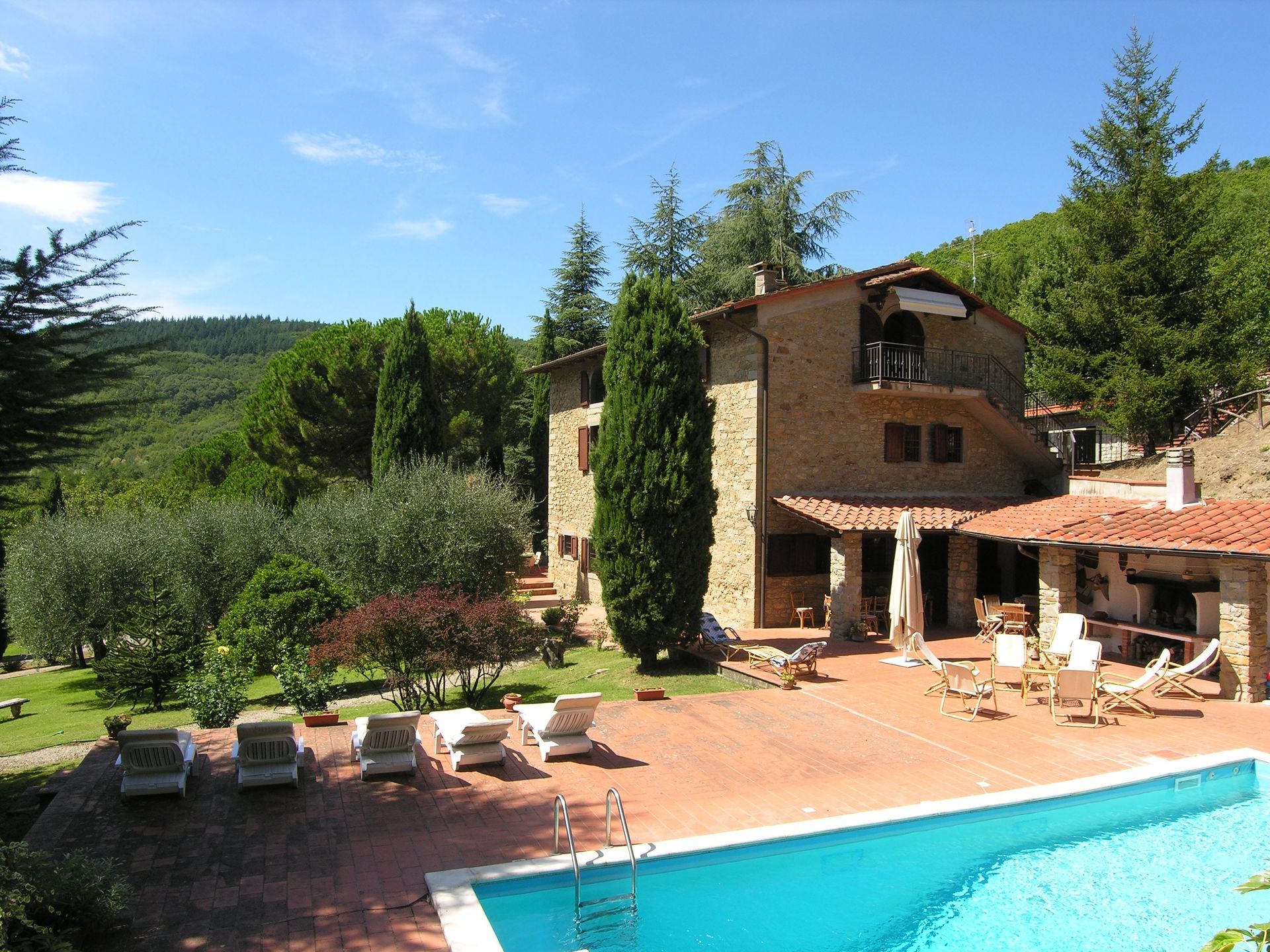 Beautiful private villa located in a small ancient village, 7 km away from "Barberino del Mugello", in a panoramic position which overlooks the valley below. The villa is surrounded from a large garden, enclosed and equipped with barbecue. In the park there is the swimming pool equipped with changing room and shower. In the park there is also a tennis court (concrete); In the property there are extensive terraced areas, paved and equipped. Laundry room adjacent to the villa. Large parking area and garage with 2 parking spaces available. Opportunity to book the structure for 8 people, in which case it will not be available the attic.