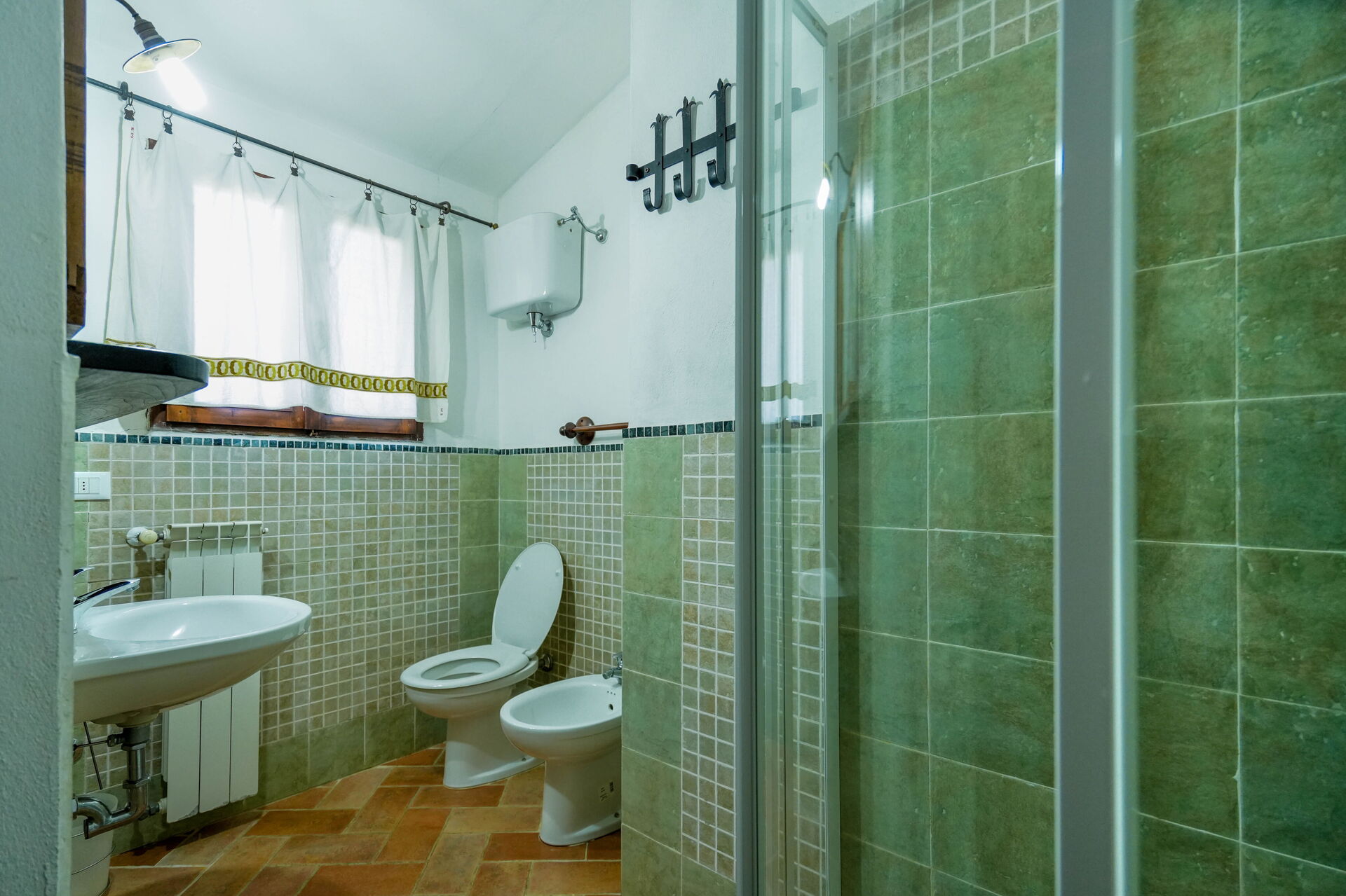 Badeværelse 2: vask, wc, bidet, bruser.