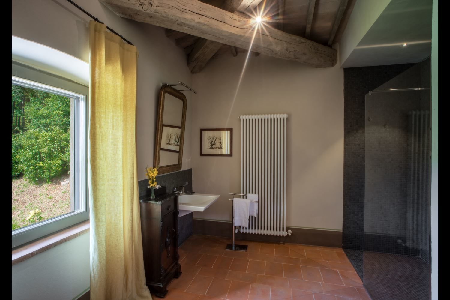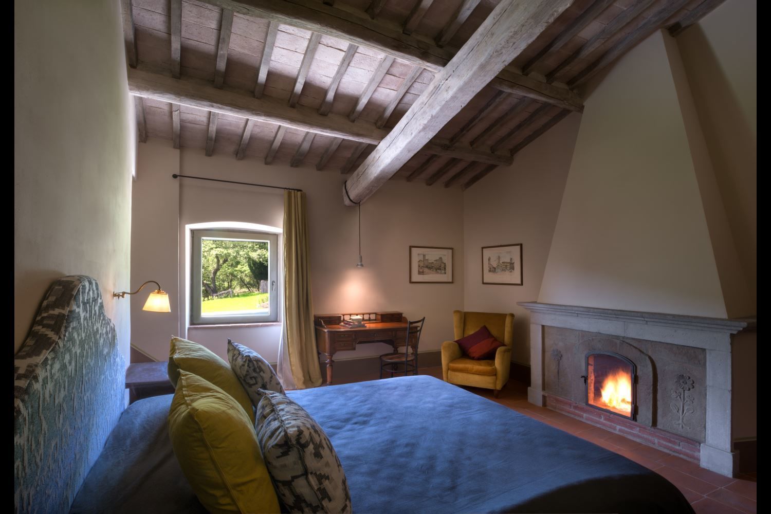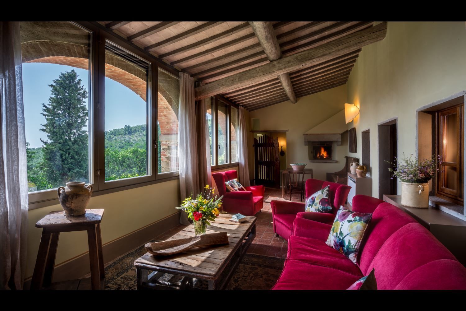 Nice garden and surroundings, good for walking and exercising. I can imagine how wonderful could be having dinner on the patio table outside. In winter was too cold to be outside. But the view is beatiful from the upper floor windows. We could lit up everynight the fireplace. The owners provided us a small Christmas tree and few decoration. Location is quite comfortable to reach easily Arezzo. Also Monte San Savino and Cortona, it is a 45 minutes drive.