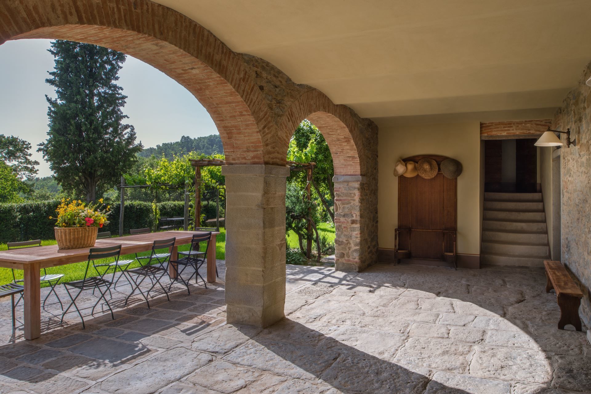 One of the villa's bonuses is certainly its location. It is located within the Pomaio winery, a renowned winery that produces its excellent wines following the rules of eco-sustainability. Pomaio is listed as one of the 13 most beautiful Design Cellars in the Region of Tuscany for the Toscana Wine Architecture project, and this 'Green' philosophy was also followed for the renovation of the villa. In fact, thanks to the materials used, the villa has a high energy-saving rating, with positive effects both for the environment and for those who stay there in all seasons.