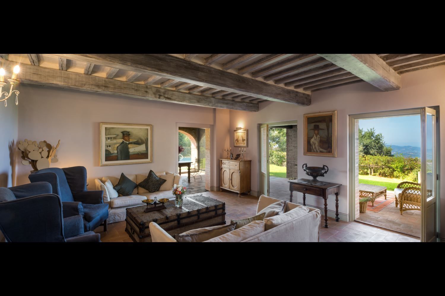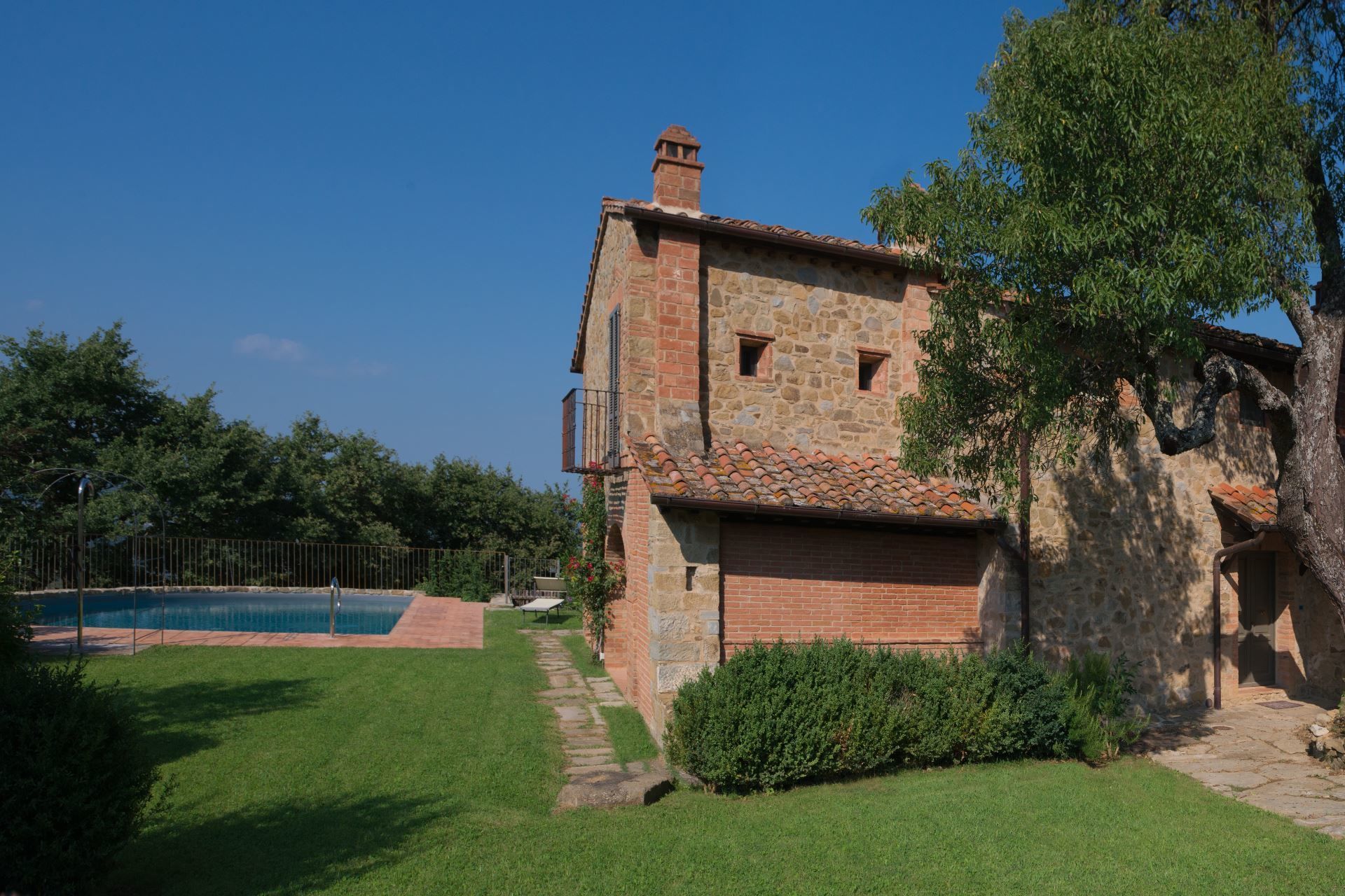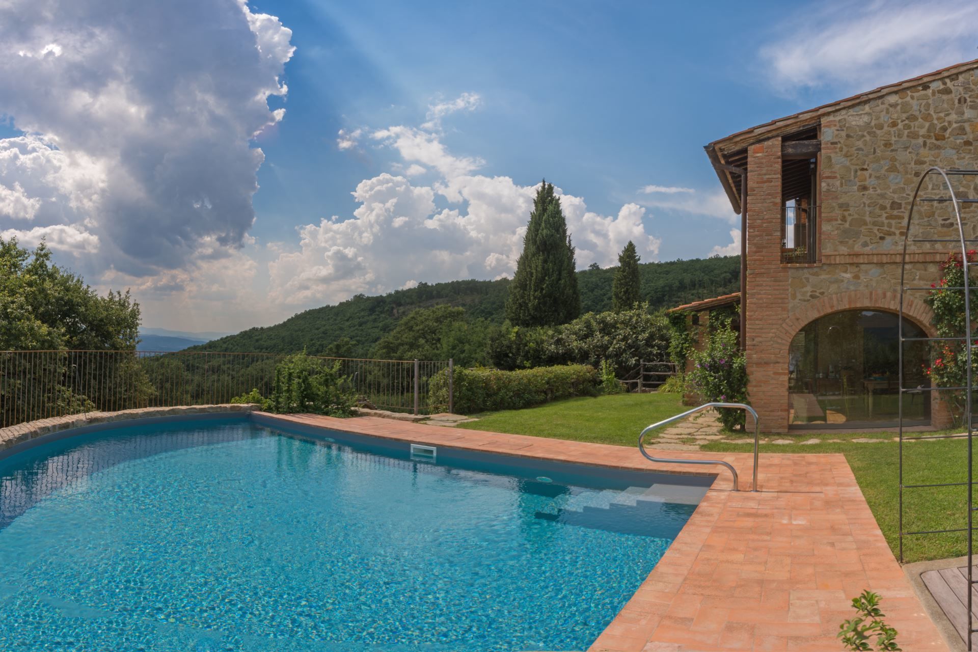 At Villa Mandorlo you will have at your disposal a private garden (about 5000 square metres) and a splendid swimming pool extremely panoramic, overlooking the valley, the surrounding chain of hills and the beautiful city of Arezzo, which, day and night, will offer you truly suggestive sceneries.