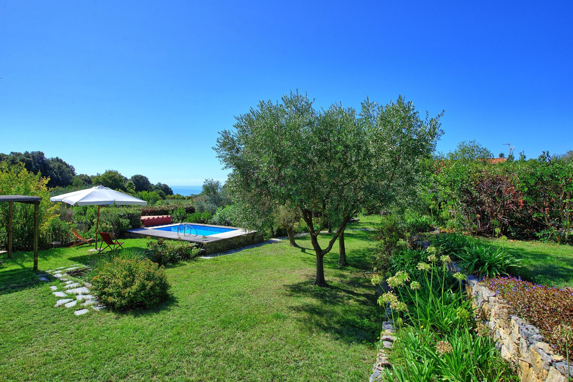 Sommerhus beliggende lige ved den lille landsby Montemarcello i Ligurien. Byen er en af de smukkeste borgbyer i Italien. Ejendommen har en privat pool og er beliggende i et meget naturskønt område over Punta Corvo.