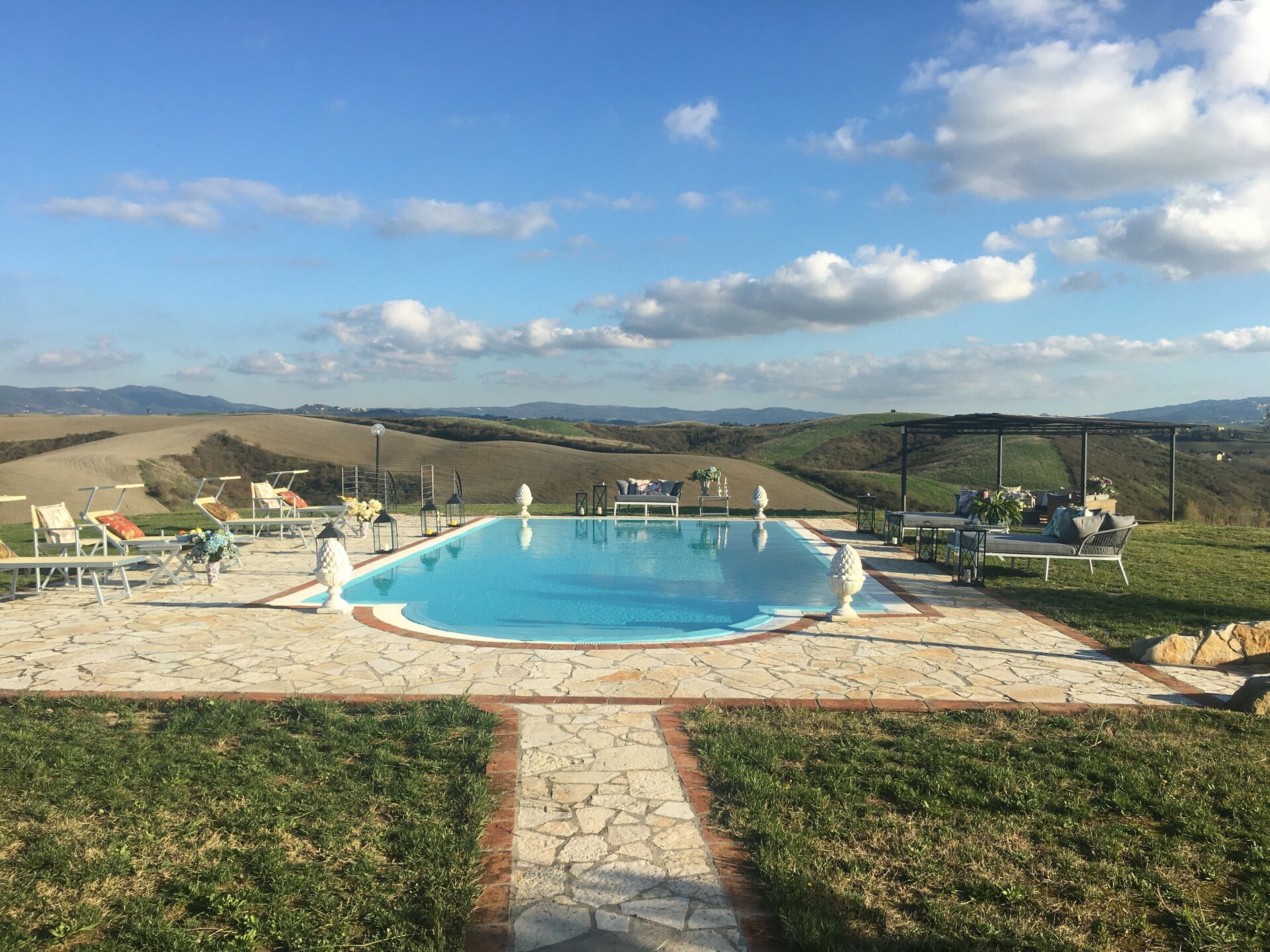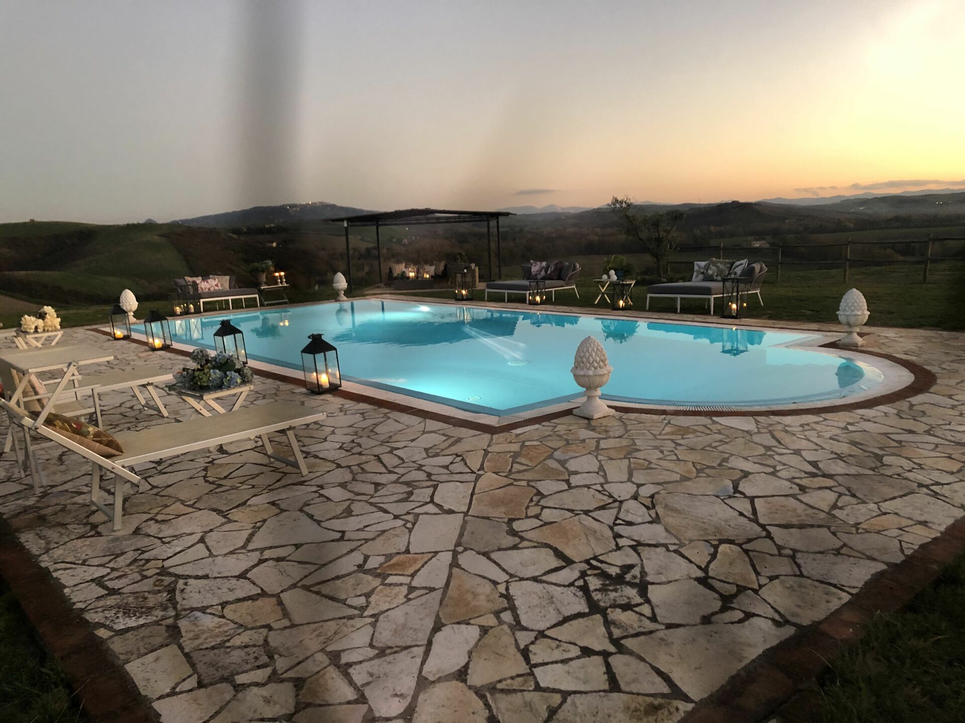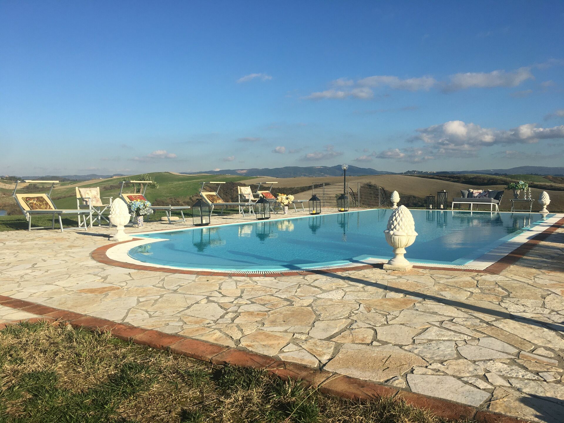 [English translation courtesy of Easy Reserve] We had a wonderful, peaceful stay at Villa Barbara. It's a lovely, spacious villa with a beautiful pool and stunning views stretching for miles across Tuscany. There are cozy seating areas and comfortable lounge areas in various spots. The kitchen is a bit dark, but that's why it's nice and cool.