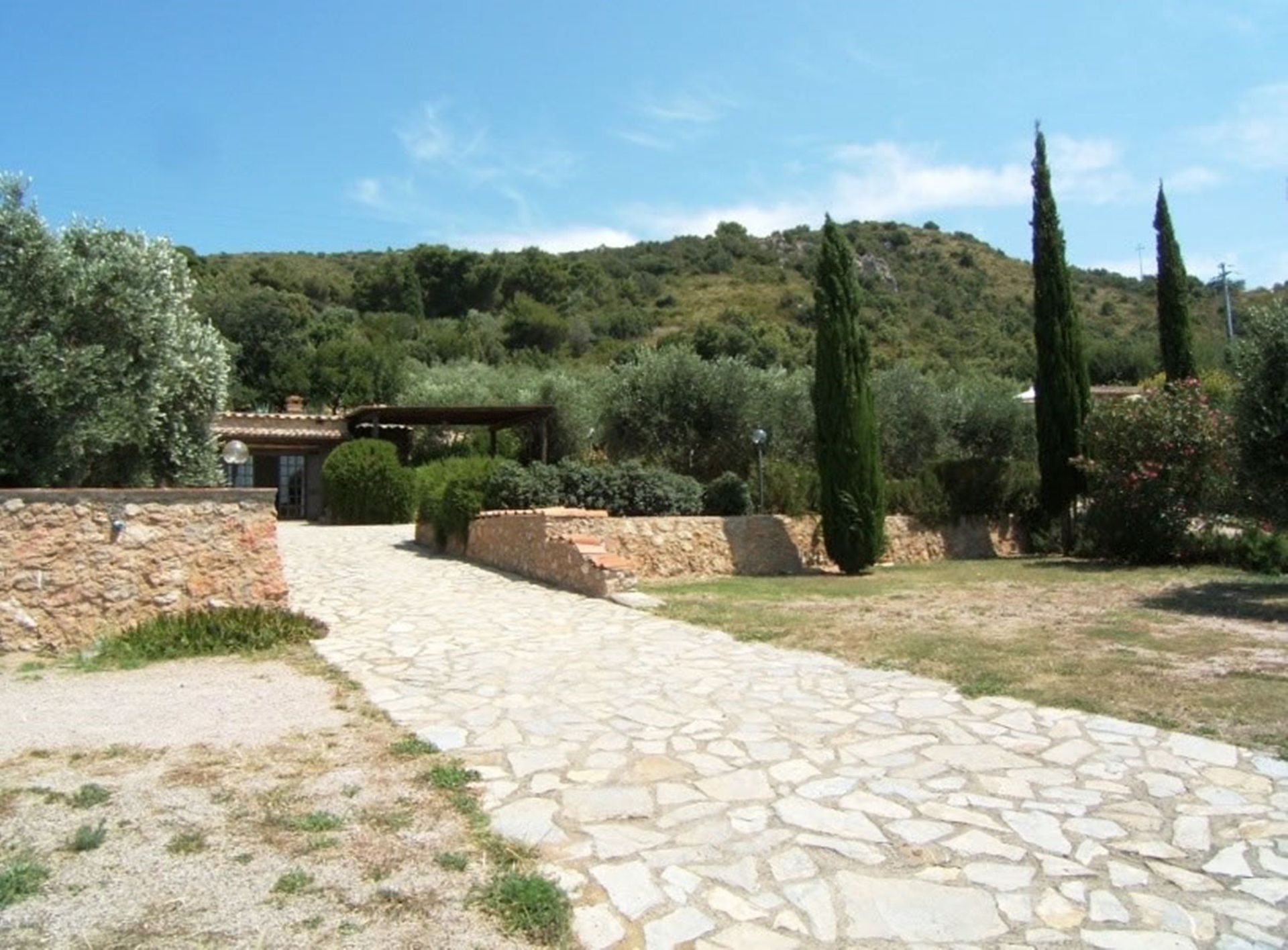Villaen ligger ca. 200 m over havets overflade. De stenede og sandede bugter er 3.5 km vÊk og kan let nÂs med bil. Til fods er der ikke langt og turen ned ad bakken er fin, men opstigningen er hÂrd.