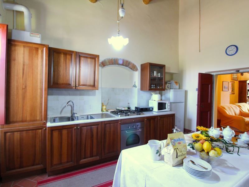 On the ground floor there is the apartment where the owners live, as well as a cellar and a shed for the farm's agricultural tools, while the first floor is reserved for you. The furnishings are very nice and comfortable, enriched with local antiques, and blend in perfectly with the old features of the house. Not far away, on the other side of the wood, passes the railway line that connects central Italy with the main cities of the peninsula (Florence, Bologna, Rome, Milan), so it will be easy to move around even without a car.