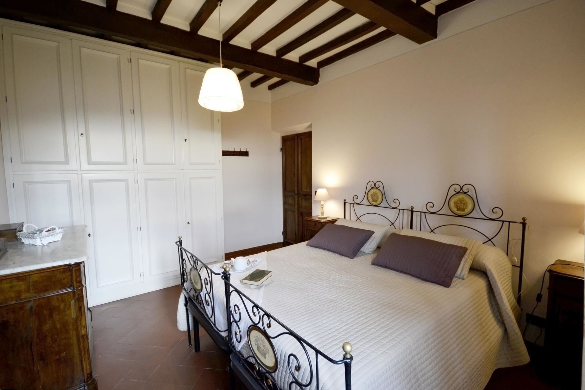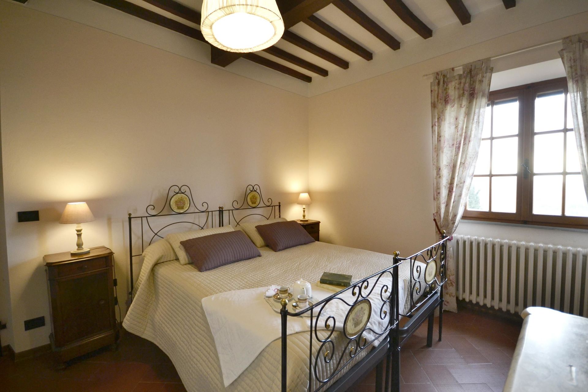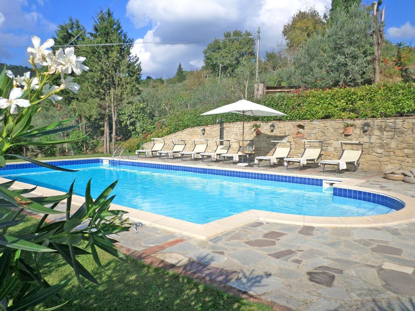 Når I ankommer, vil I møde en dejlig ren velholdt ejendom med udsigt over bakkerne perfekt til afslappende ferie i Toscana. Efter en hektisk dag med sightseeing, er det dejligt at nyde lidt tid med venner og familie ved kanten af poolen med et glas vin - det er en perfekt måde at køle ned på sidst på dagen. Udendørs vil I også finde gårdhave og barbecue. Hvis I nyder at lave mad til familie og venner så er der et veludstyret køkken inkluderet kaffemaskine, mikroovn, brødrister, komfur og køleskab, samt, , samt masser af service og bestik til op til otte personer. Hvis I foretrækker at spise 'al fresco', er der en fuldt møbleret veranda, hvor I kan nyde vejret, mens I spiser udendørs.