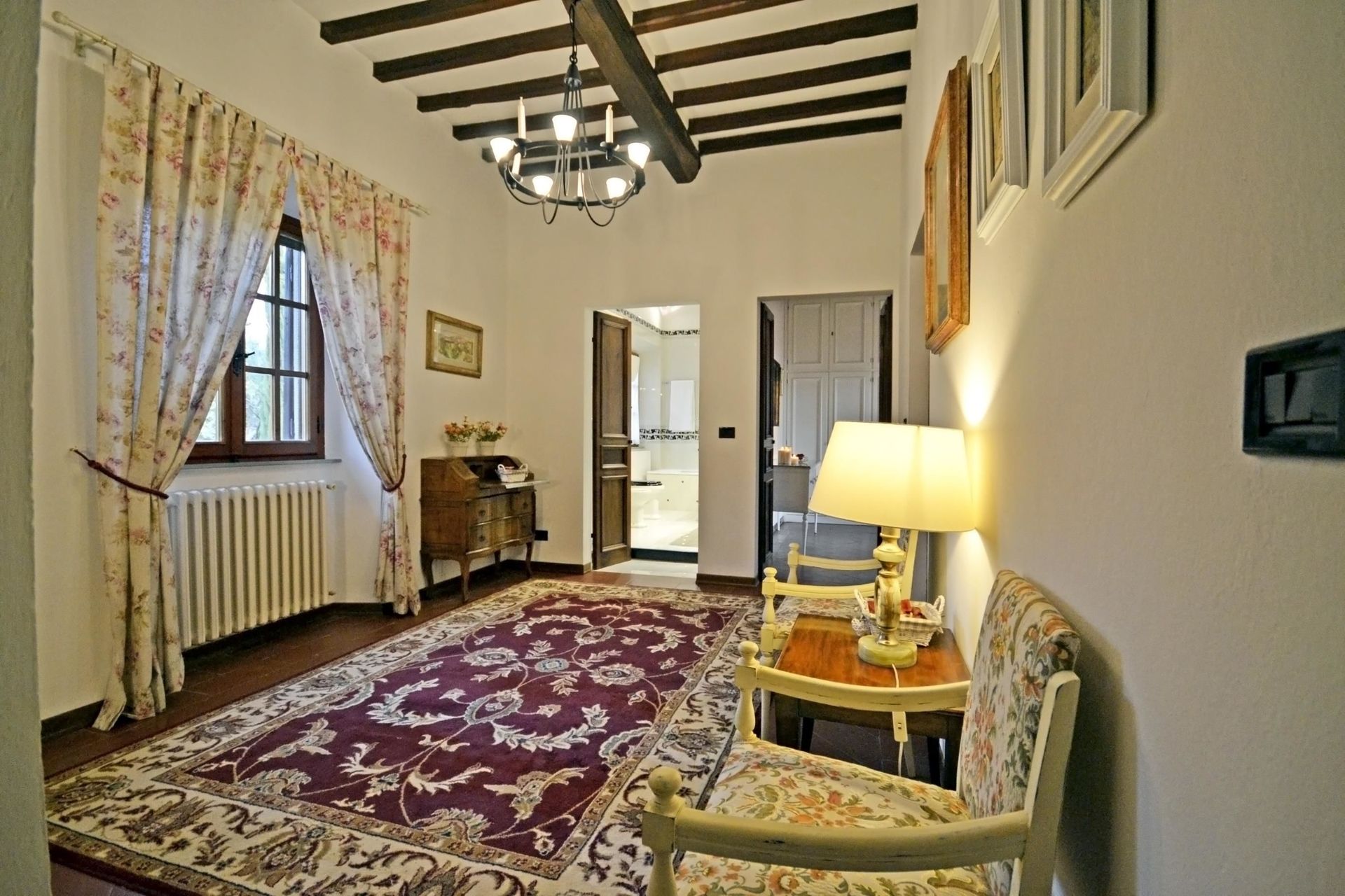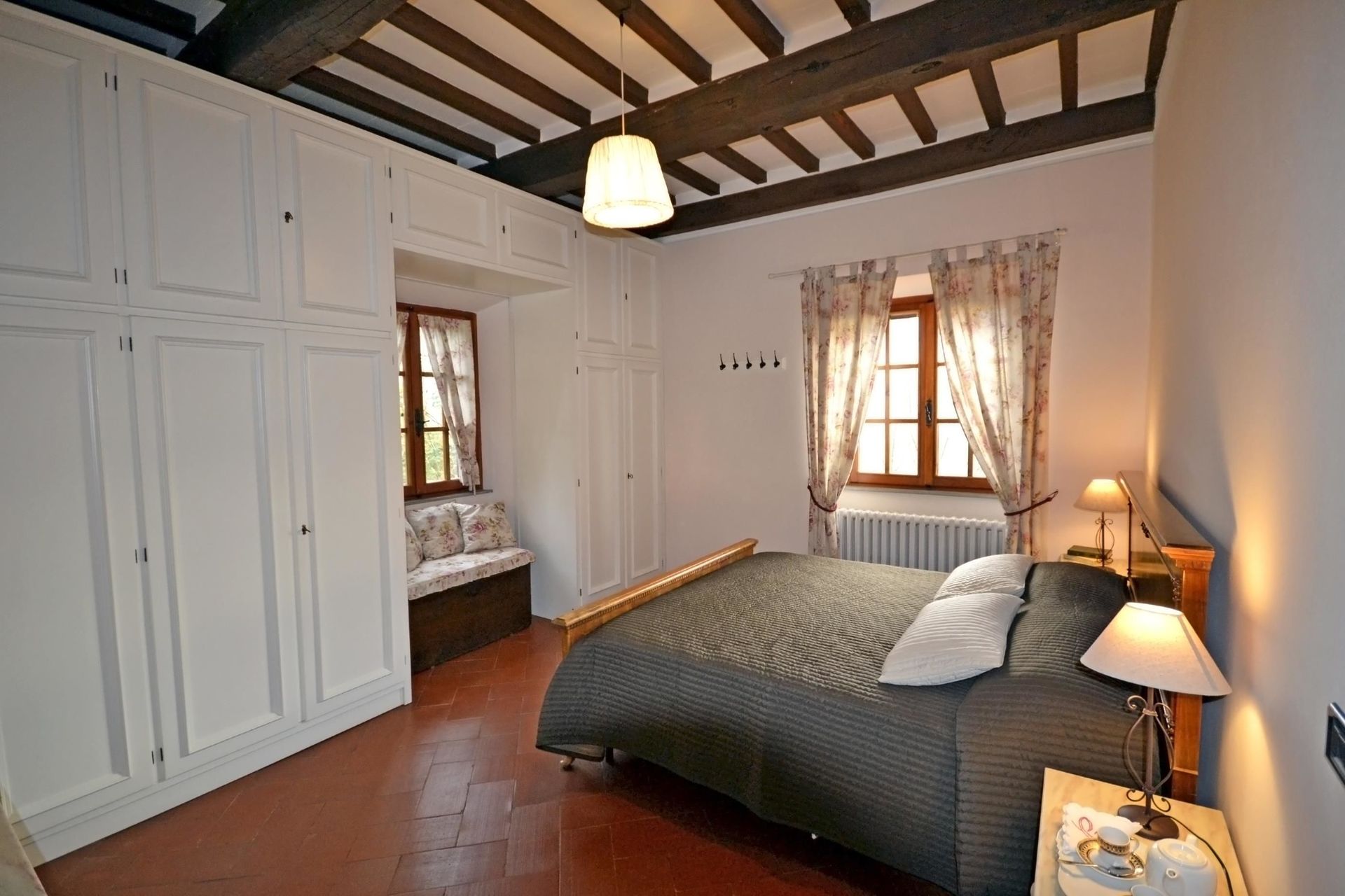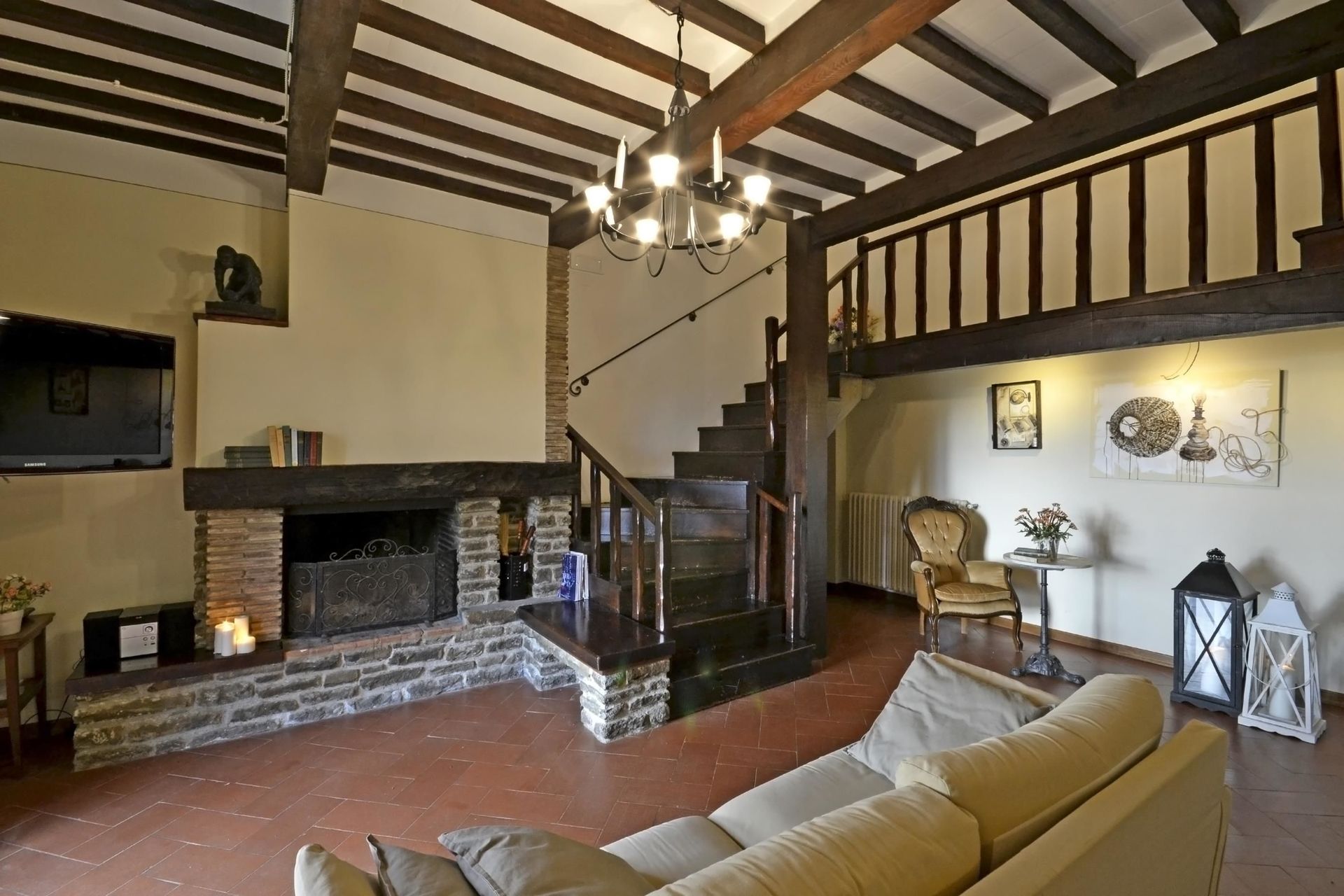 Når I ankommer, vil I møde en dejlig ren velholdt ejendom med udsigt over bakkerne perfekt til afslappende ferie i Toscana. Efter en hektisk dag med sightseeing, er det dejligt at nyde lidt tid med venner og familie ved kanten af poolen med et glas vin - det er en perfekt måde at køle ned på sidst på dagen. Udendørs vil I også finde gårdhave og barbecue. Hvis I nyder at lave mad til familie og venner så er der et veludstyret køkken inkluderet kaffemaskine, mikroovn, brødrister, komfur og køleskab, samt, , samt masser af service og bestik til op til otte personer. Hvis I foretrækker at spise 'al fresco', er der en fuldt møbleret veranda, hvor I kan nyde vejret, mens I spiser udendørs.