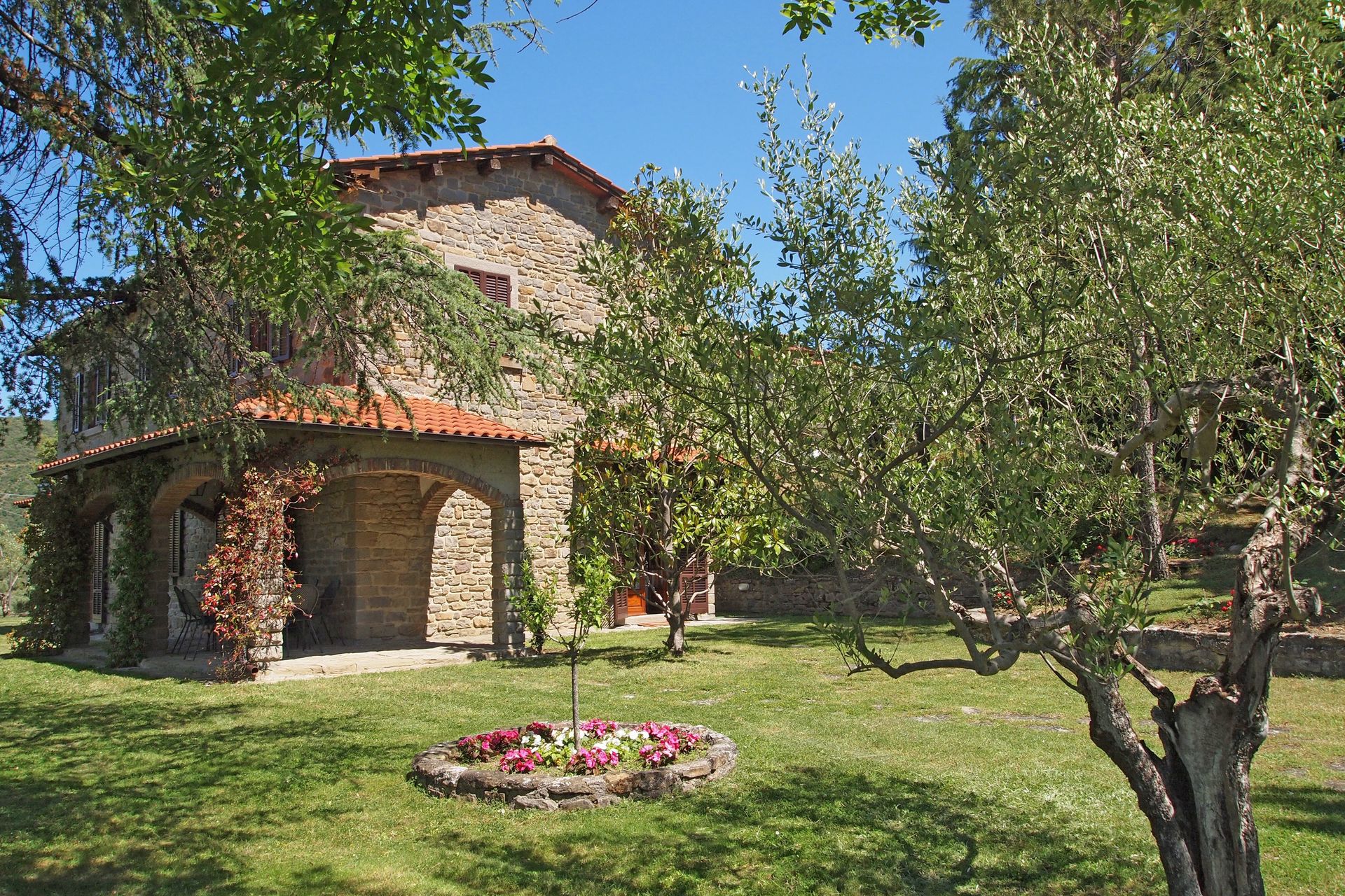 Ejendomen er velbeliggende 2 km fra Pergo, Italien og kun 7 km fra Cortona. Villa Gelsomino er en dejlig sten ejendom (260 m2) med WIFI, klimaanlæg og privat pool. Ejendommen kan huse op til otte gæster i fire soveværelser med tre badeværelser.