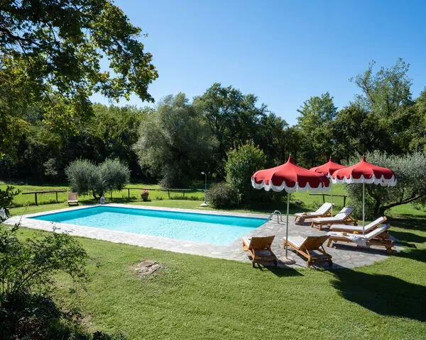 The private pool is 12*5 mt, open from May 1st until Sept 30, with decks, chairs and lots of reading corners!