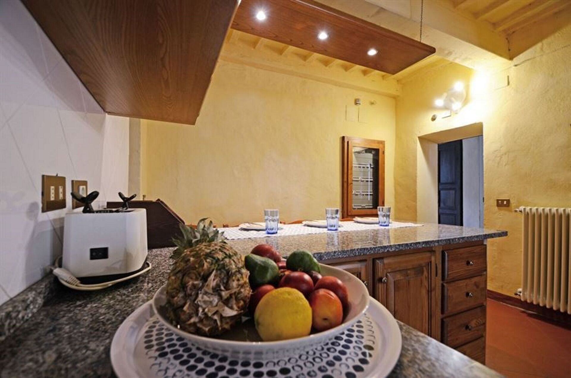 Villa Montalcinello is as follows: Ground Floor- Bathroom with shower and toilet for use with the pool on the porch- Double room- Double room for children- Bathroom with shower - Relaxing lounge with panoramic views. First Floor- A lounge, reception/ conversation area, TV and entrance to the living room from the outside.- Reading room- Kitchen- Large dining room with fireplace- Laundry with small bathroom- Bathroom - Complete Bathroom - 3 single rooms - 1 double room - 2 twin rooms