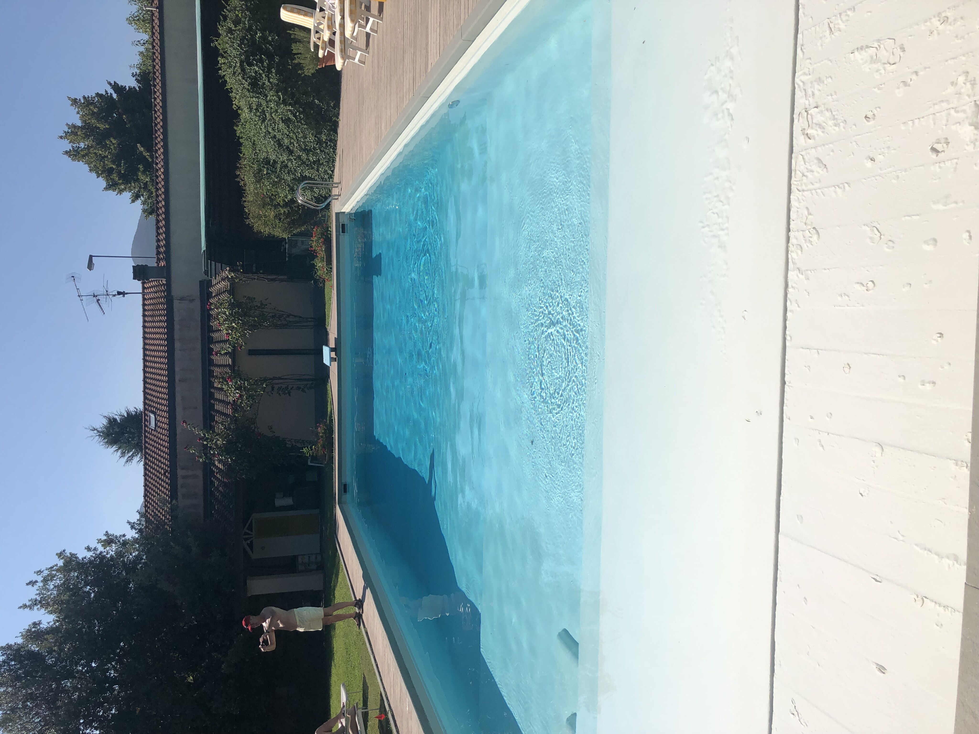 About 20 m away from your holiday home within the owners’big garden there is an amazing swimming pool, which is entirely set in earth (16x6 m, 10 cm – 3 m deep), access through an electrical gate. The swimming pool is at the guests’ complete disposal from 9 a.m. until 5 p.m. , after 5pm the swimming pool might be used from owner too. Children can use inflatable mattress and inflatable animals to play in the swimming pool, which is perfectly safe since in the initial part the water is very shallow. The swimming pool area is equipped with deckchairs, beach beds, and veranda with table, chairs and swing, utility bathroom, two cabins to be used as changing rooms, fridge, and external shower with hot/cold water. In front of the swimming pool, there is also a big lawn (1000 sqm).