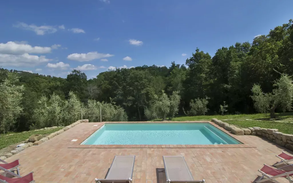 Den ekstraordinære og luksuriøse villa ligger i et stille område tæt på byen Roccastrada omgivet af olivenlunde og skov. Hus på landet "Casa la Selvolina", fritstående, renoveret, omgivet af træer. 5 km fra bymidten af Roccastrada, isoleret beliggenhed, i skoven. Til alene benyttelse: grund (indhegnet), naturhave, liggeplæne, pool (7 x 4 m, 135 cm dyb, Sæsonbestemt tilgængelighed: 01.Apr. - 30.Okt.) med indetrappe. Udendørs brus, terrasse, havemøbler, grill. I huset: adgang til internet. Tilkørsel (2 km natursti). Parkeringsplads ved huset. Supermarked 5 km, restaurant 2 km, busstoppested 2.2 km, sandstrand 50 km, varmtvandsbad "Petriolo" 20 km. Ridehal 2 km. Nærliggende attraktioner: Montalcino 40 km, Siena 50 km. Bemærk venligst: bil anbefales. Du kan lege eller slappe af ved din egen infinitypool. Den 2 kilometer lange vej op til villaen er ikke asfalteret og ikke i særlig god stand.