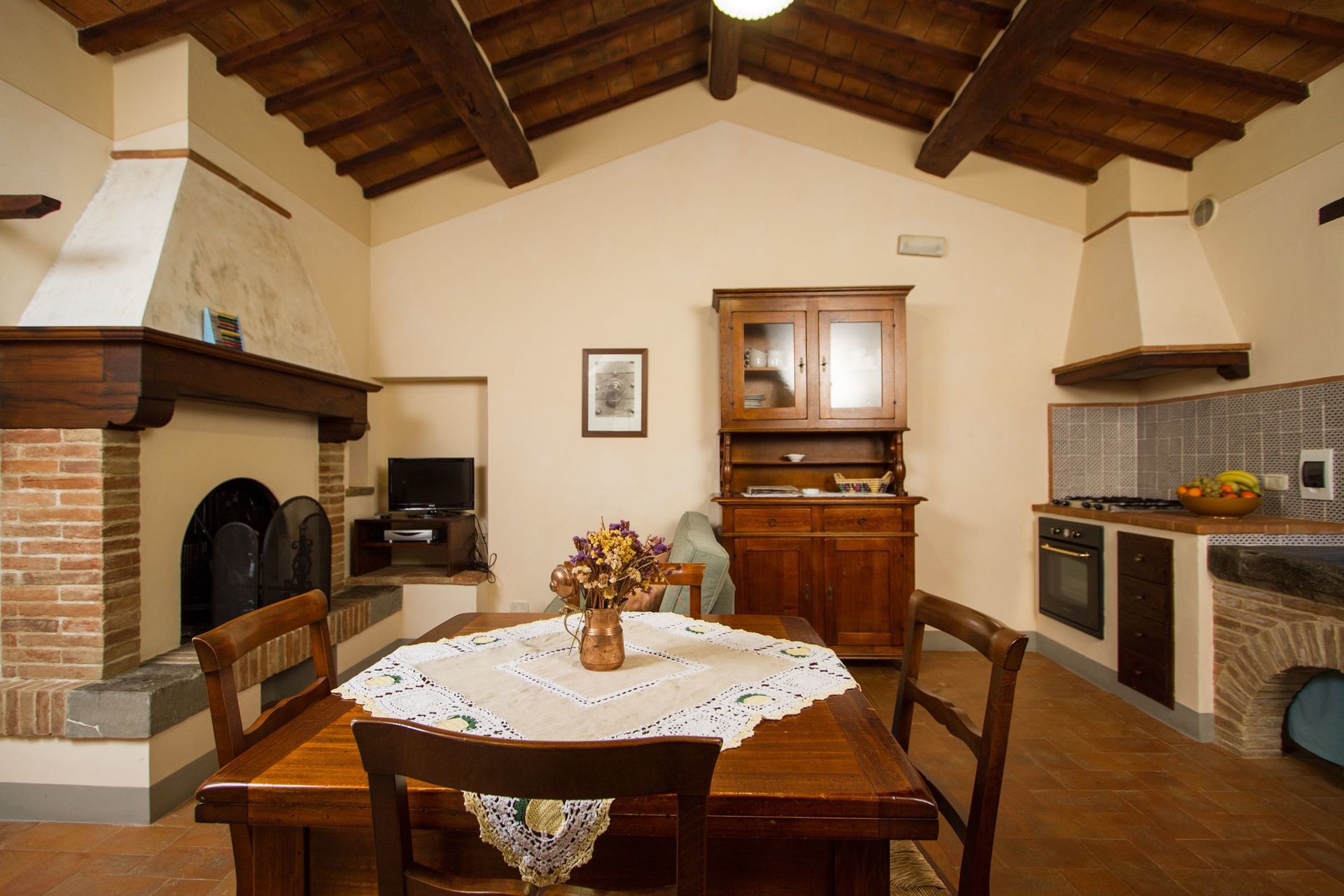 Hvis I nyder at lave mad til familie og venner så er der et veludstyret køkken med kaffemaskine, brødrister, komfur og køleskab , samt masser af service og bestik til op til fire personer. Spis 'al fresco' som en ægte toskaner. Den fuldt møblerede have er det perfekte sted for at nyde sit måltid, familien og det flotte toskanske vejr.