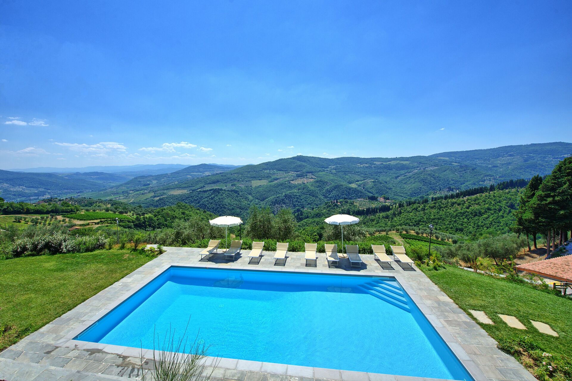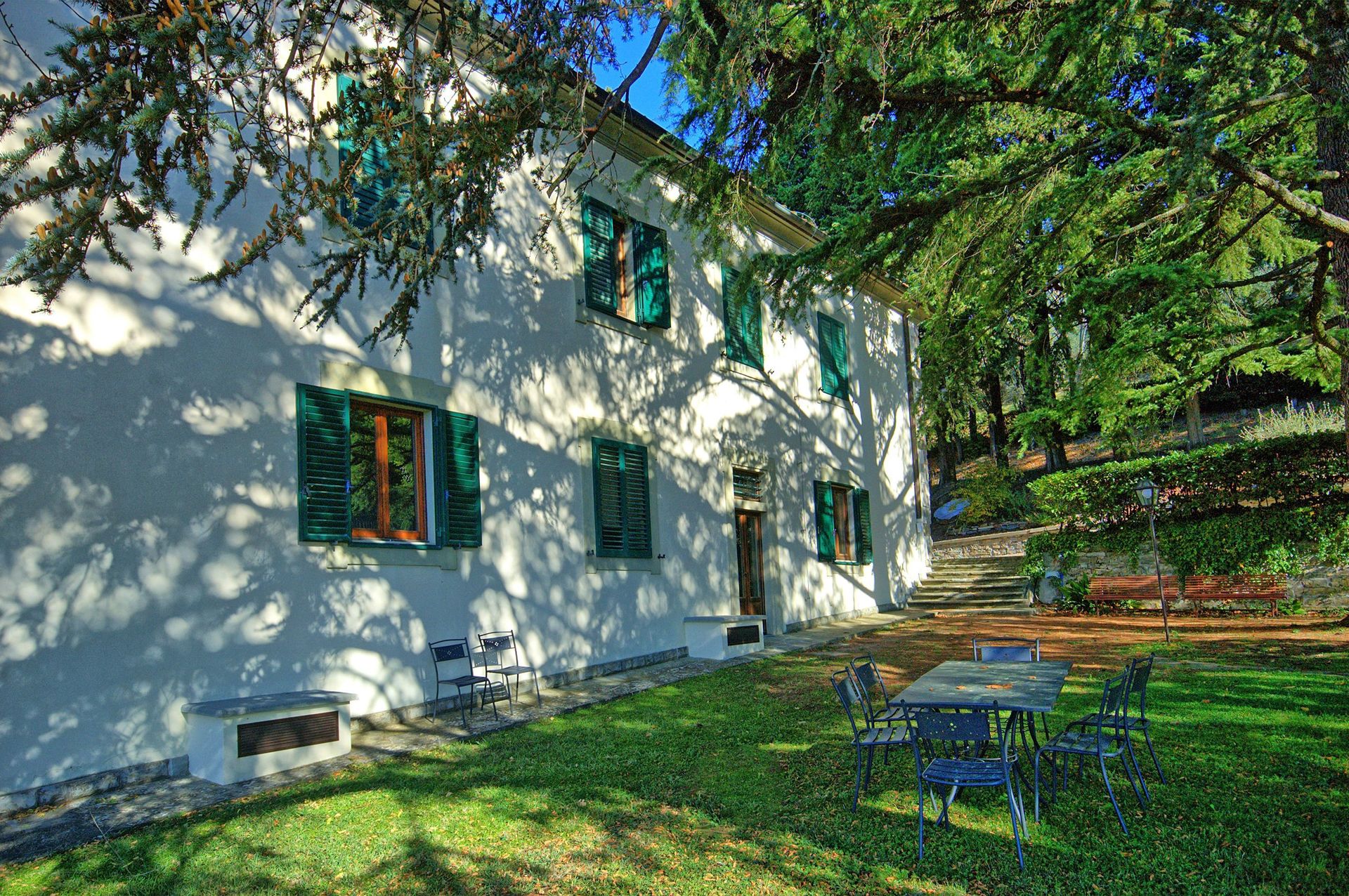 Stort hus med privat pool nær Rufina i Toscana. Denne historiske villa ligger i et fredeligt område med panoramaudsigt over dalen Val di Sieve kun 25 km fra Firenze.