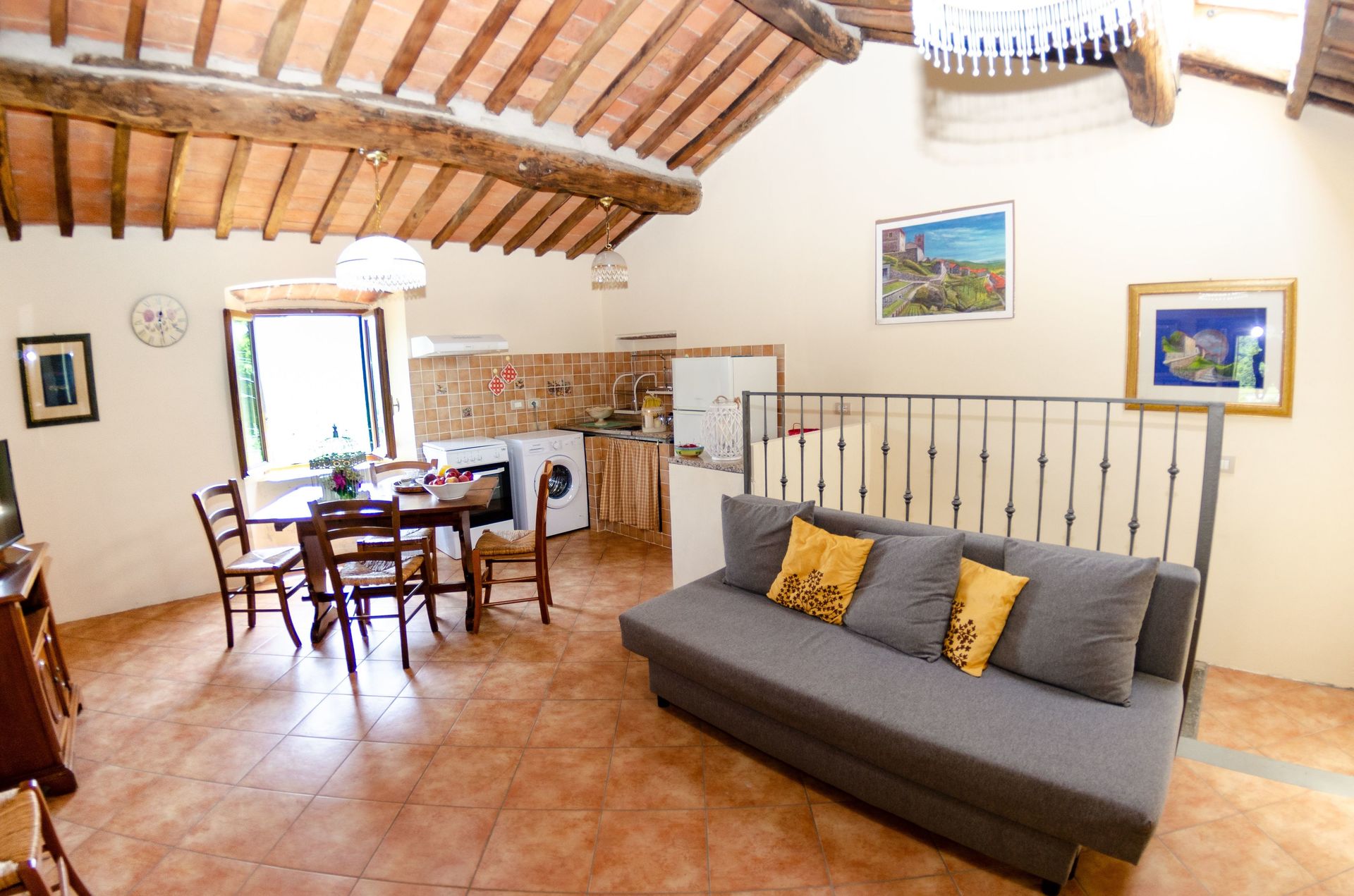 Ved ankomst til Casa Di Renzo vil I finde en skøn ren og velholdt ejendom med udsigt over bakkerne perfekt til en rolig ferie i Toscana. Efter en travl dag med museumsbesøg, er det dejligt at nyde lidt tid med venner og familie ved kanten af poolen med et glas vin - det er en perfekt måde at køle ned på sidst på dagen. At spise med venner og familie er en stor del af den toskanske kultur. Benyt køkkenet til madlavning med lokale produkter, når du er på ferie. Køkkenet indeholder kaffemaskine, brødrister, komfur og køleskab, samt, masser af service og bestik til op til fem personer. Spis 'al fresco' som en ægte toskaner. Den fuldt møblerede have er det ideele sted for at nyde sit måltid, familien og det fine toskanske vejr.