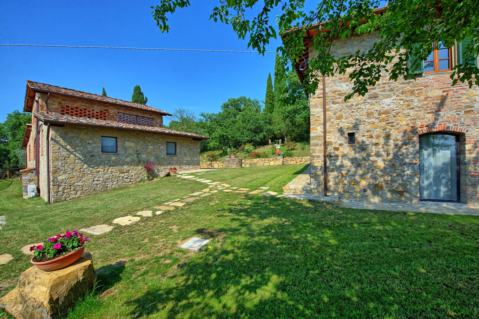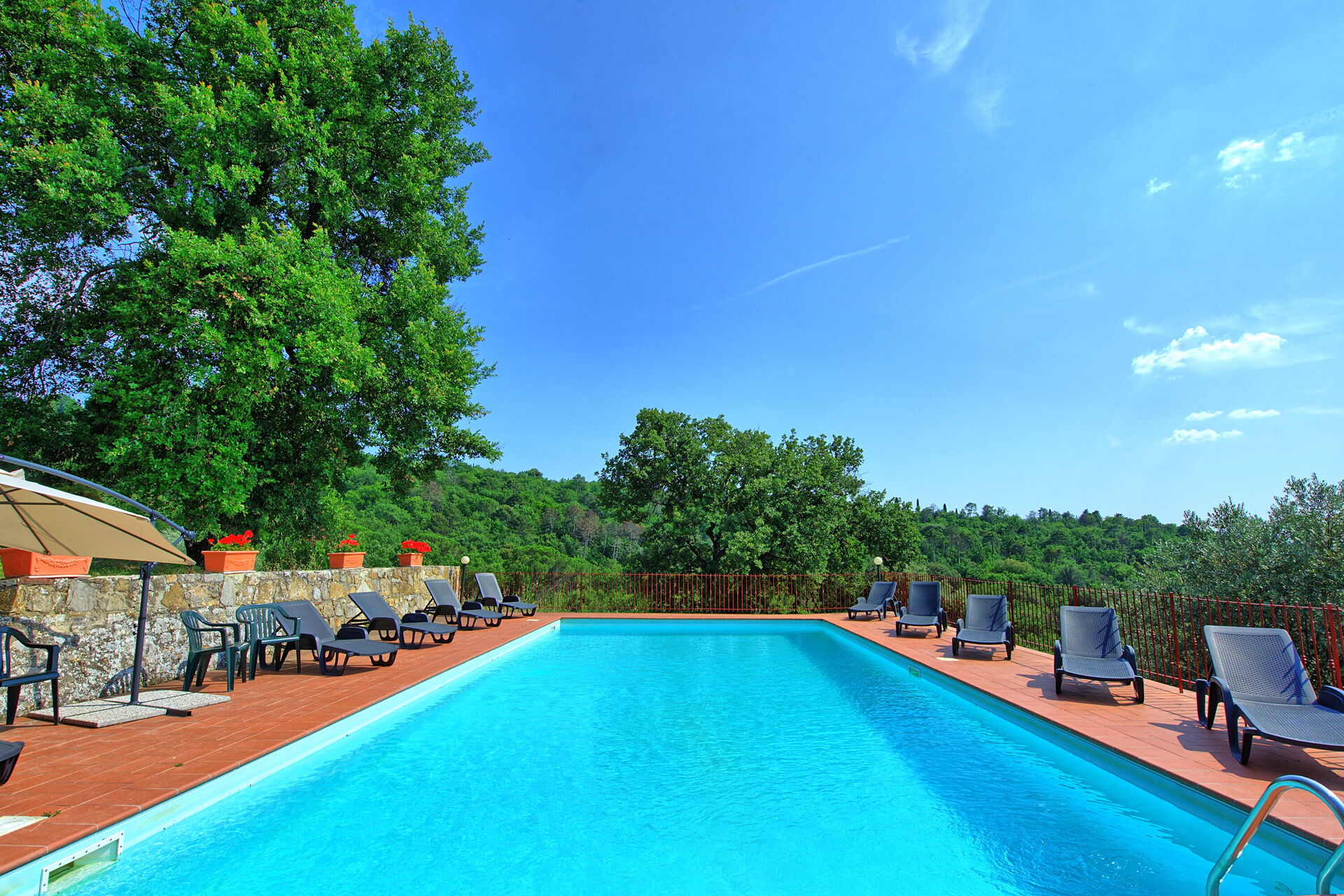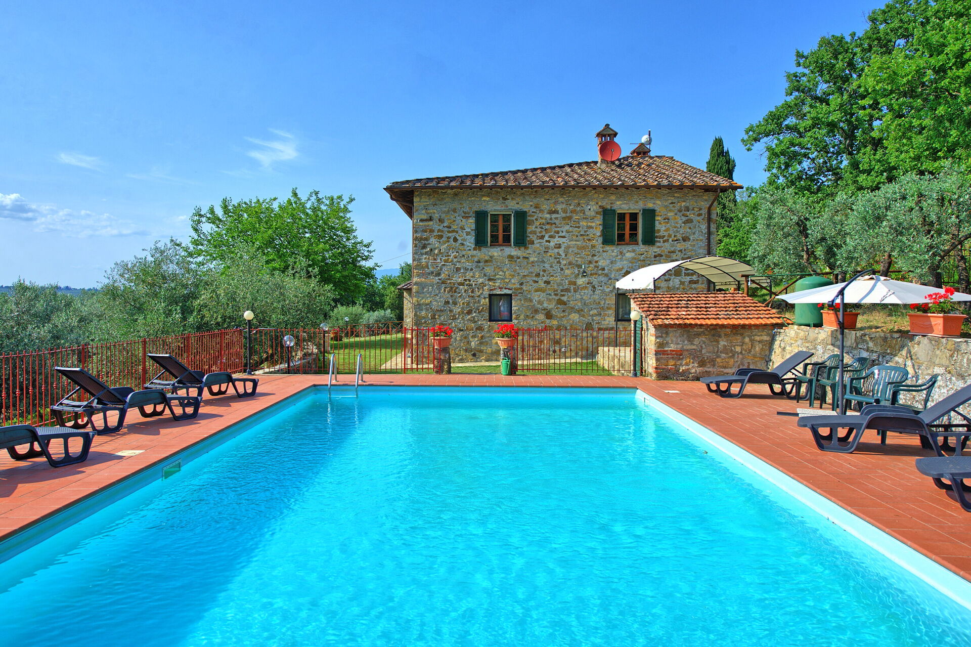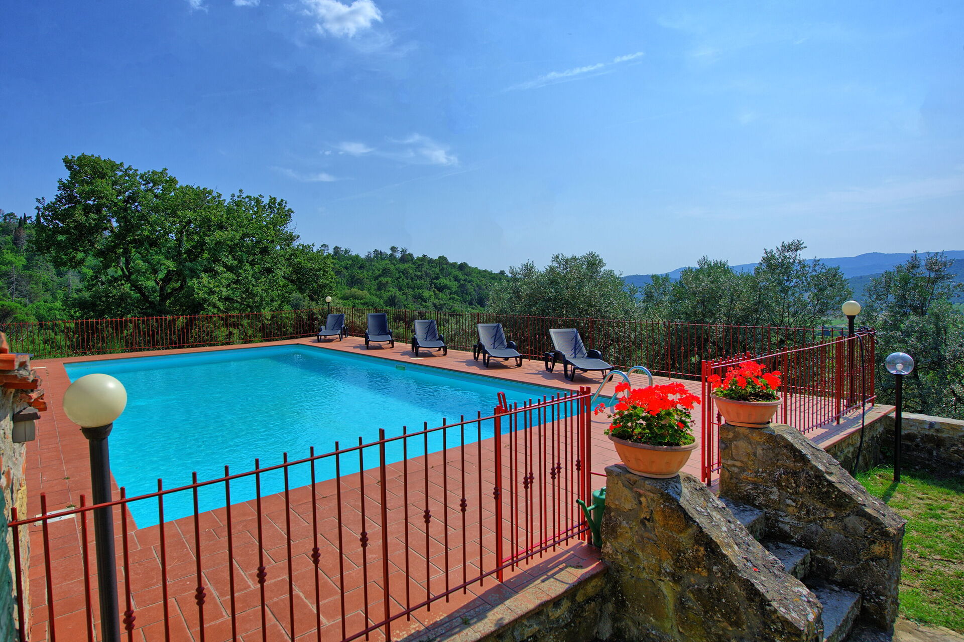 Dette typiske toscanske landsted med 6 soveværelser og 4 badeværelser ligger mellem bakkerne i Chianti og Arezzo, med en fantastisk udsigt over skoven, markerne og de omkringliggende vinmarker.