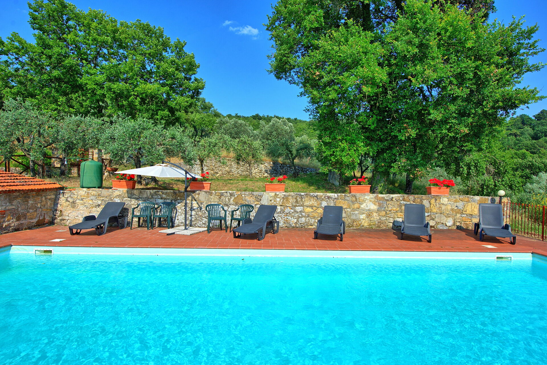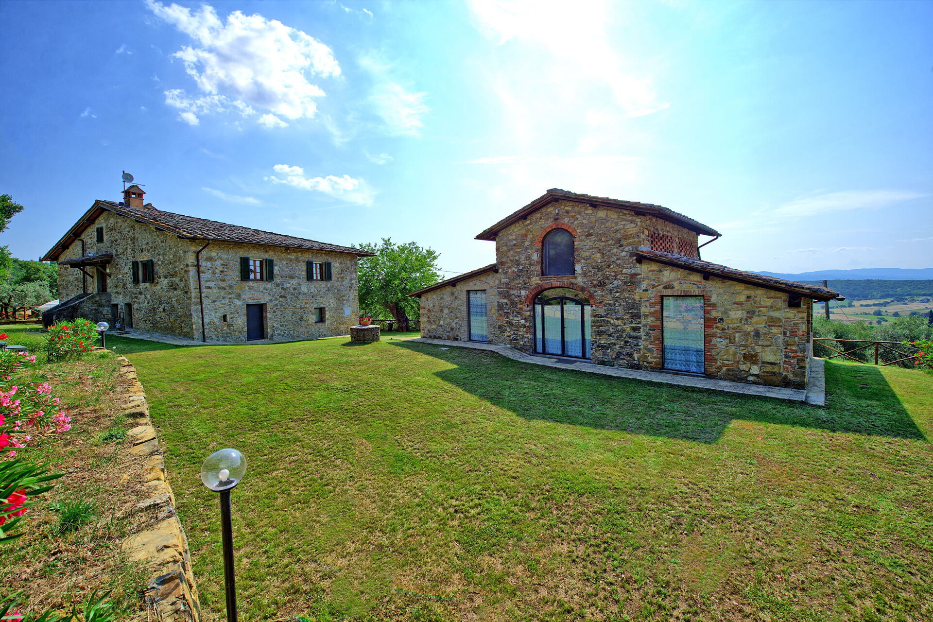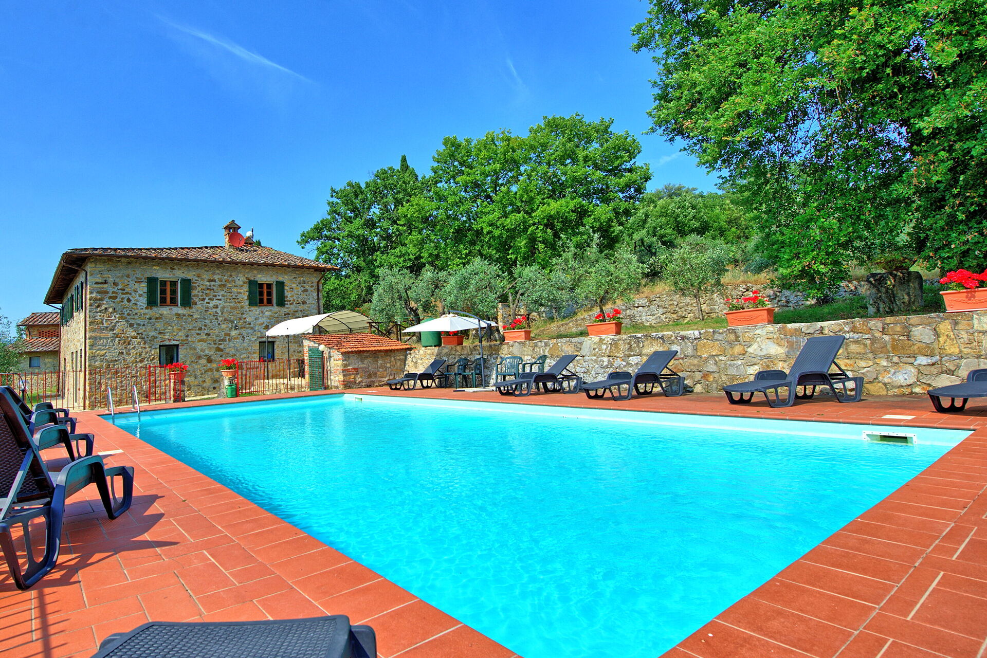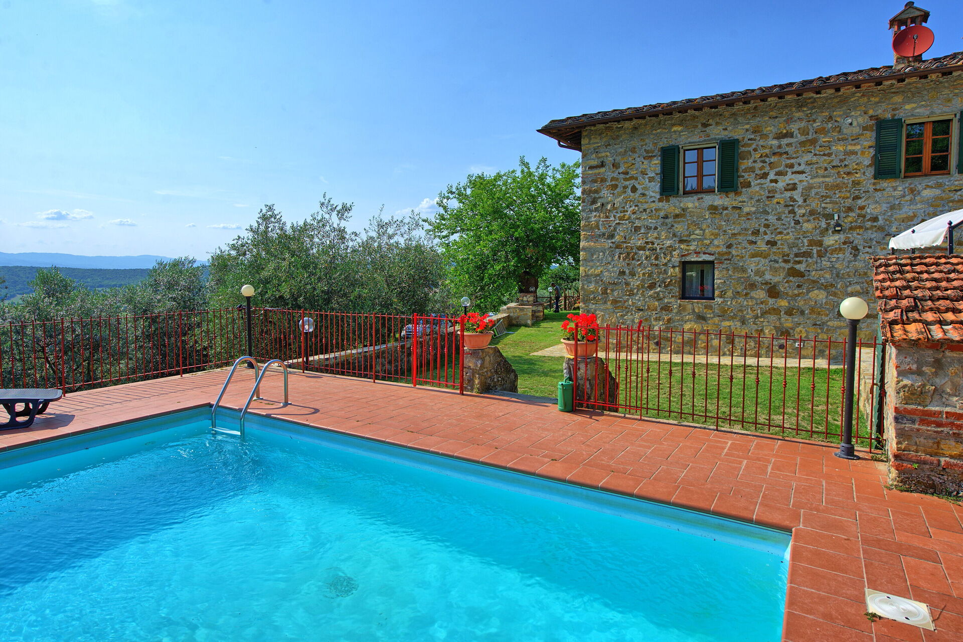 Dette typiske toscanske landsted med 6 soveværelser og 4 badeværelser ligger mellem bakkerne i Chianti og Arezzo, med en fantastisk udsigt over skoven, markerne og de omkringliggende vinmarker.