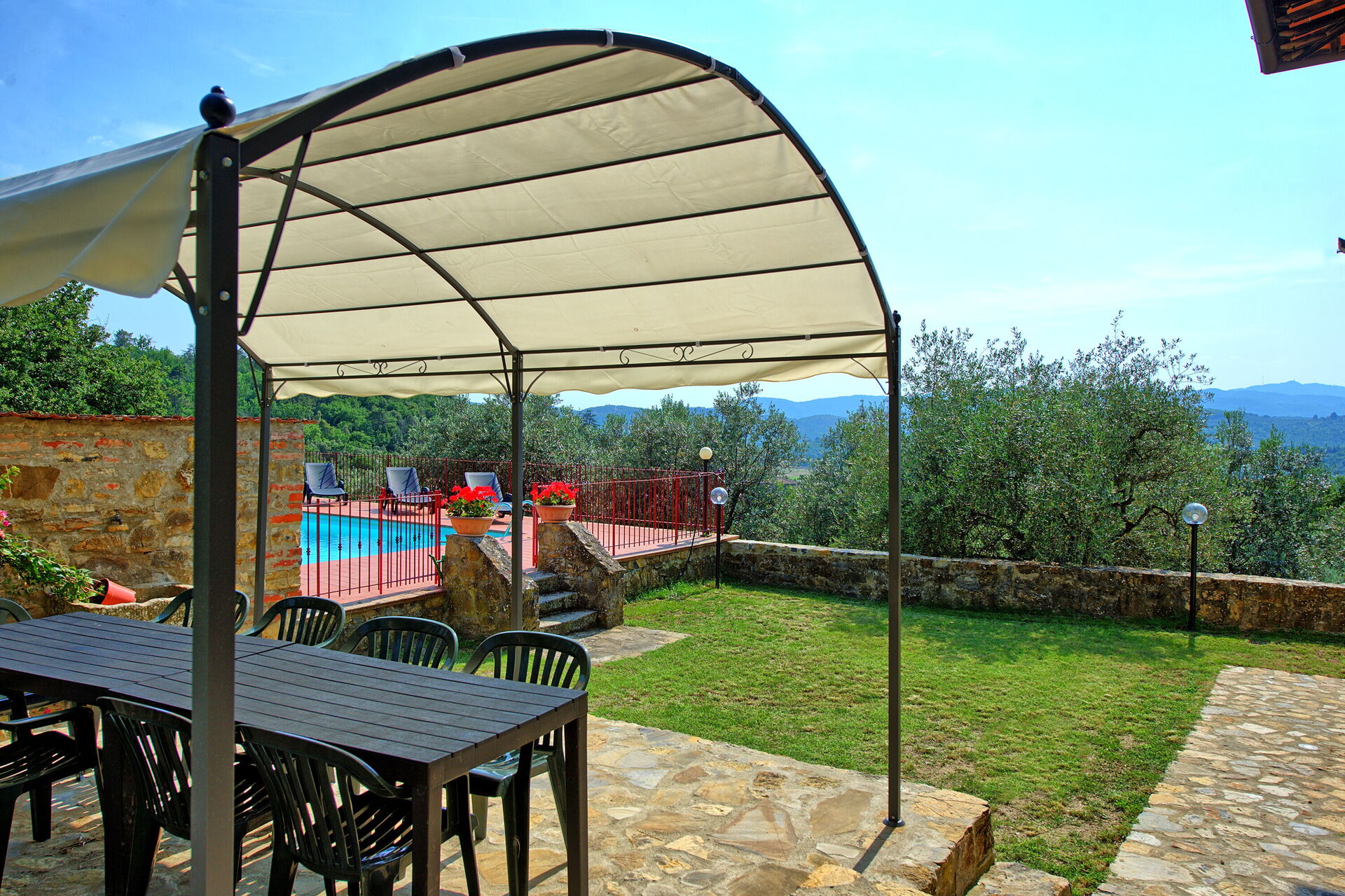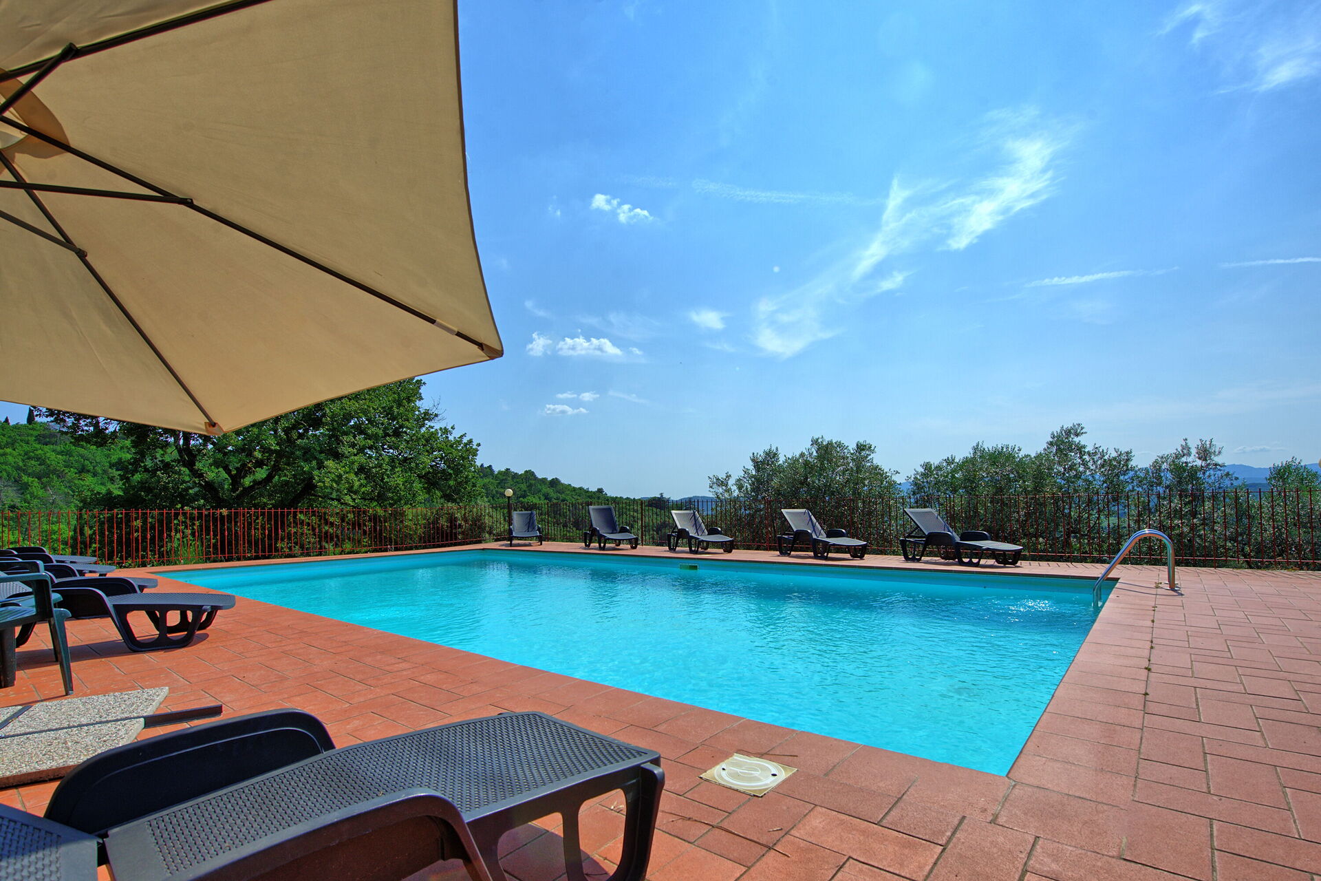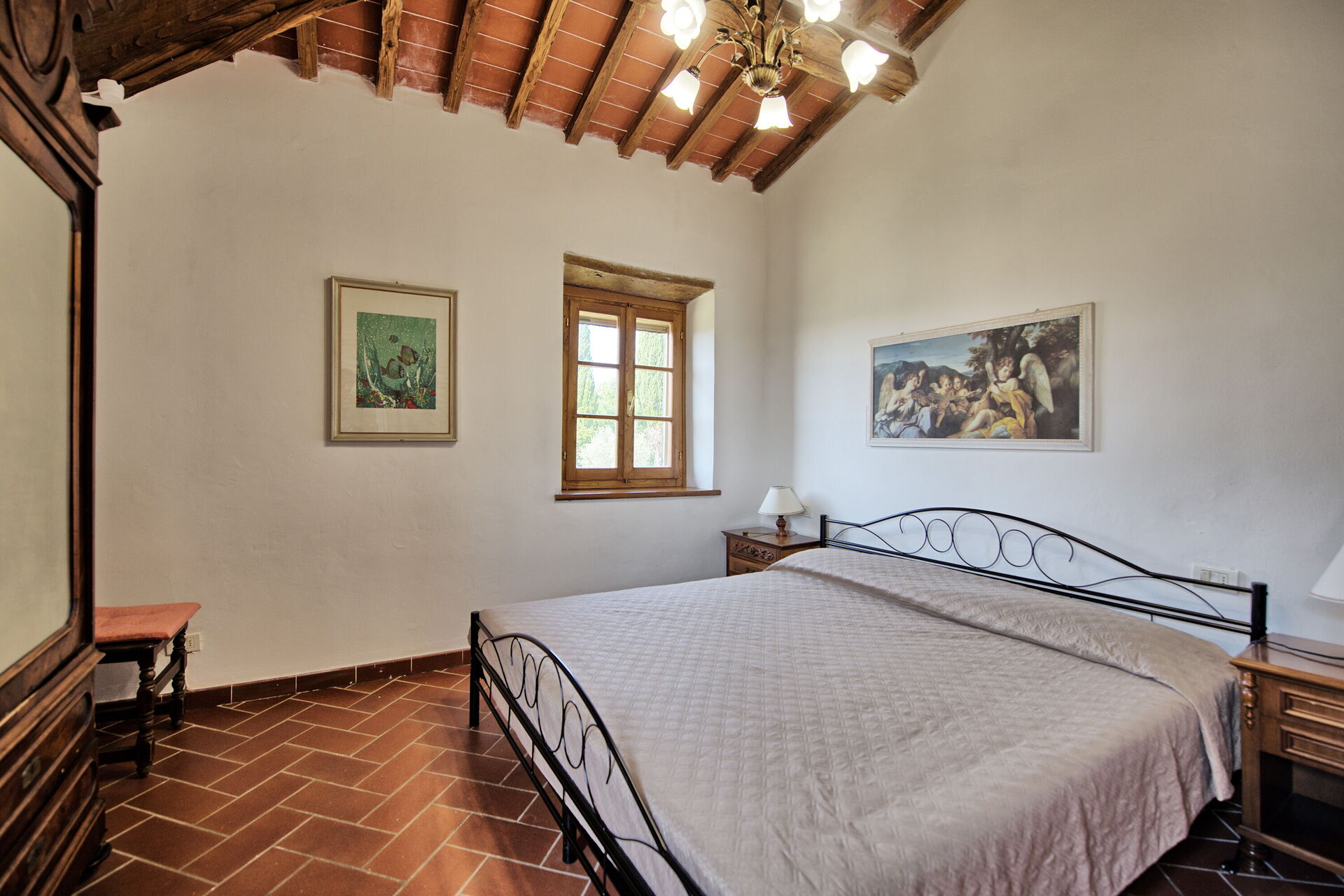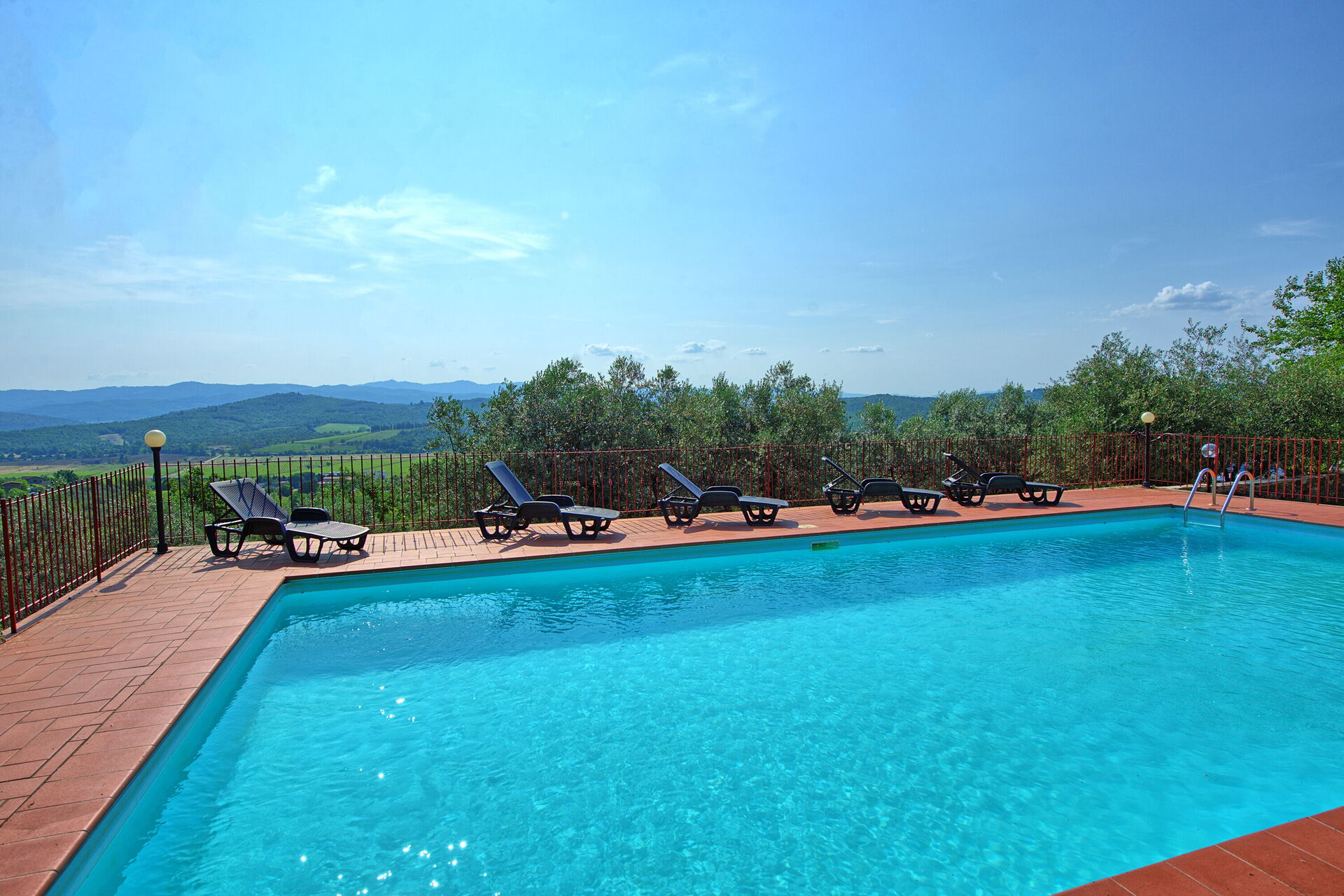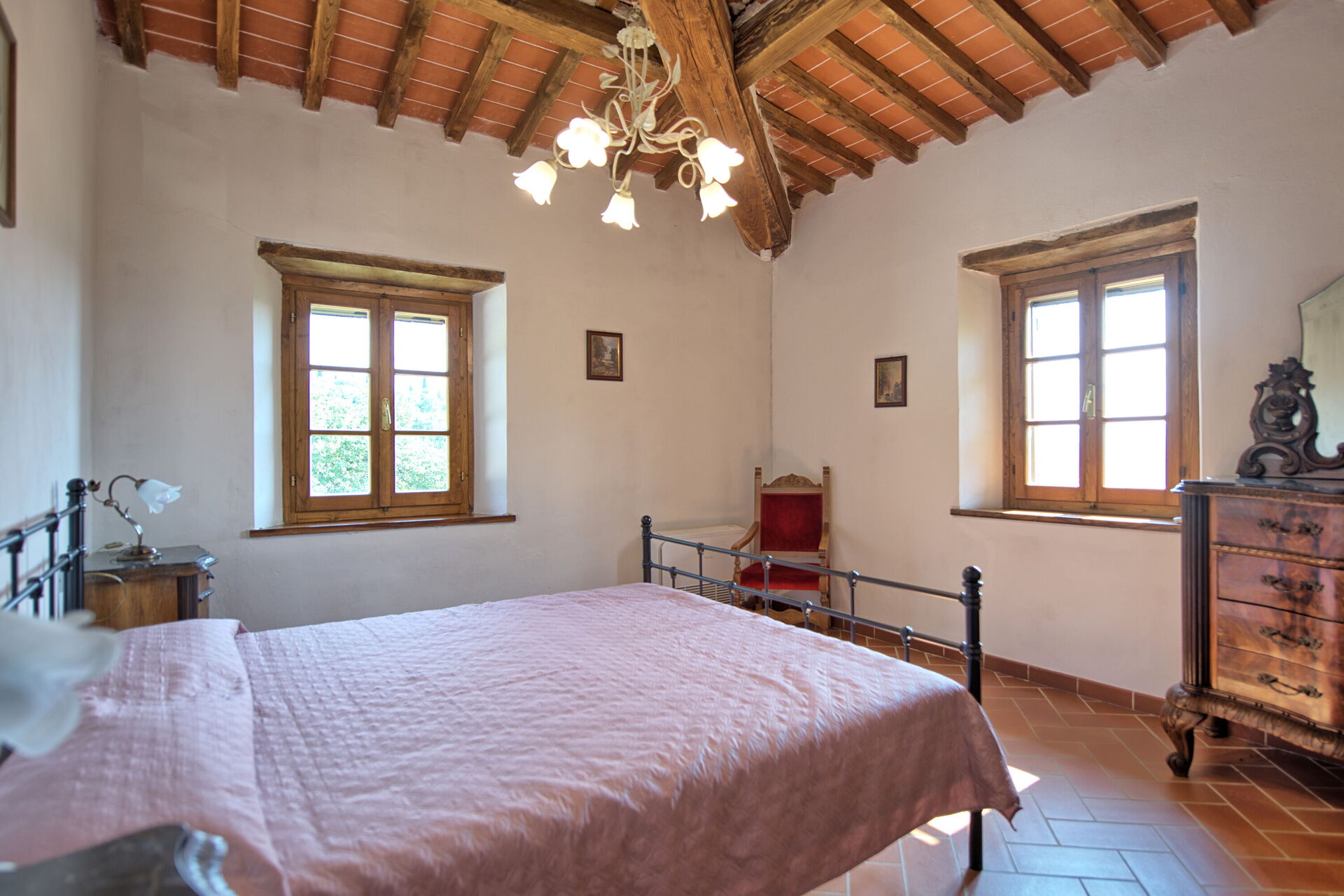Dette typiske toscanske landsted med 6 soveværelser og 4 badeværelser ligger mellem bakkerne i Chianti og Arezzo, med en fantastisk udsigt over skoven, markerne og de omkringliggende vinmarker.