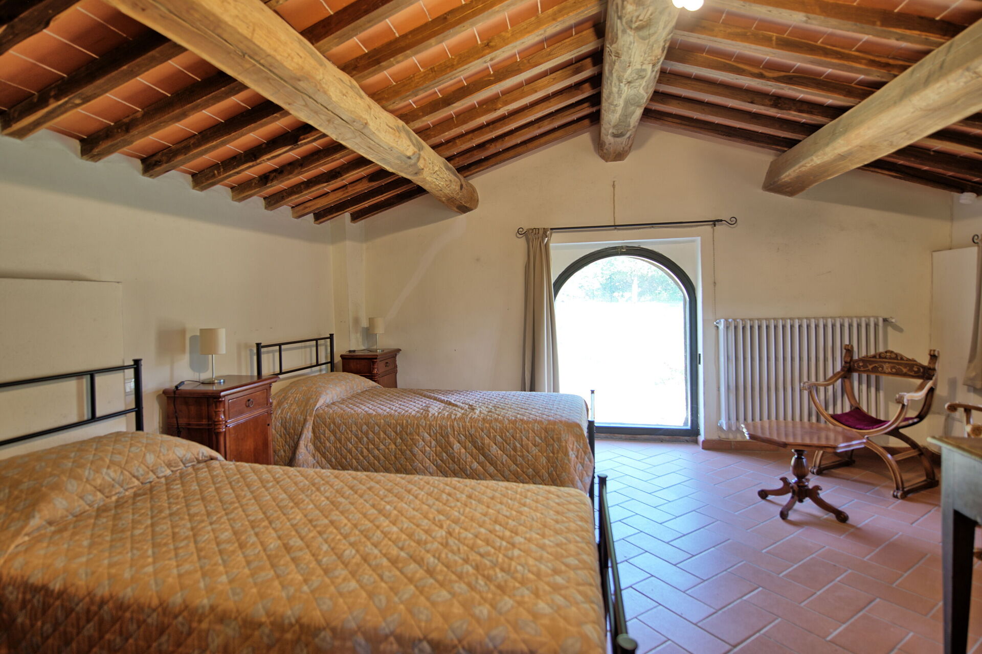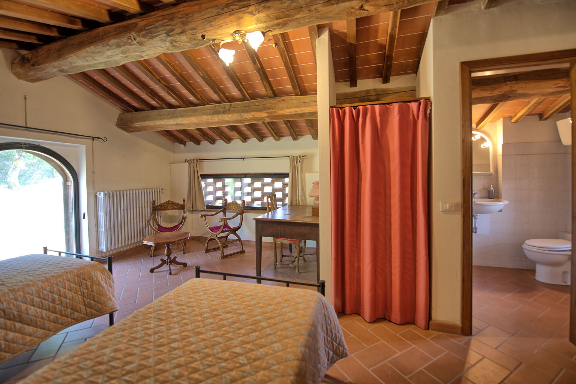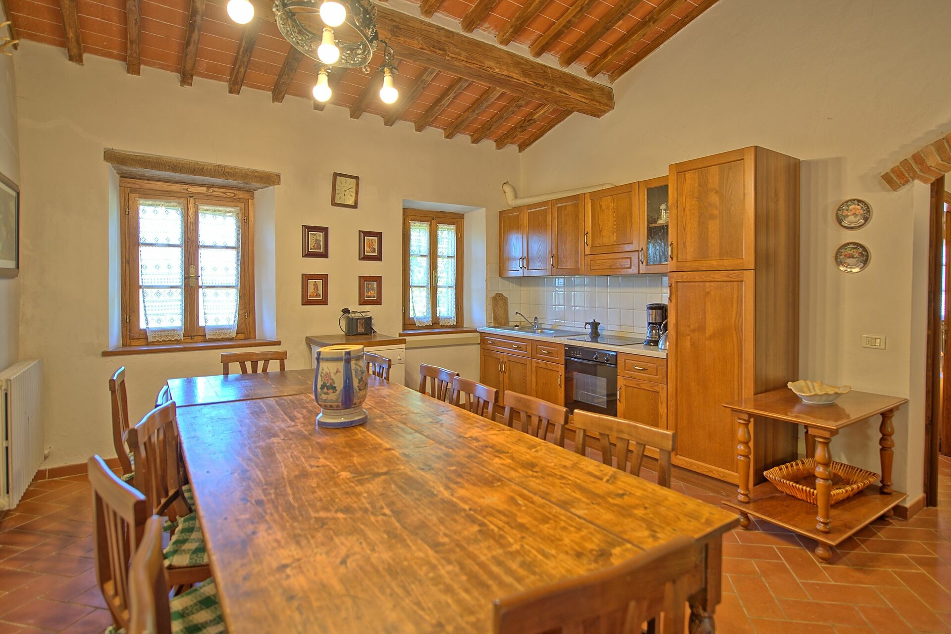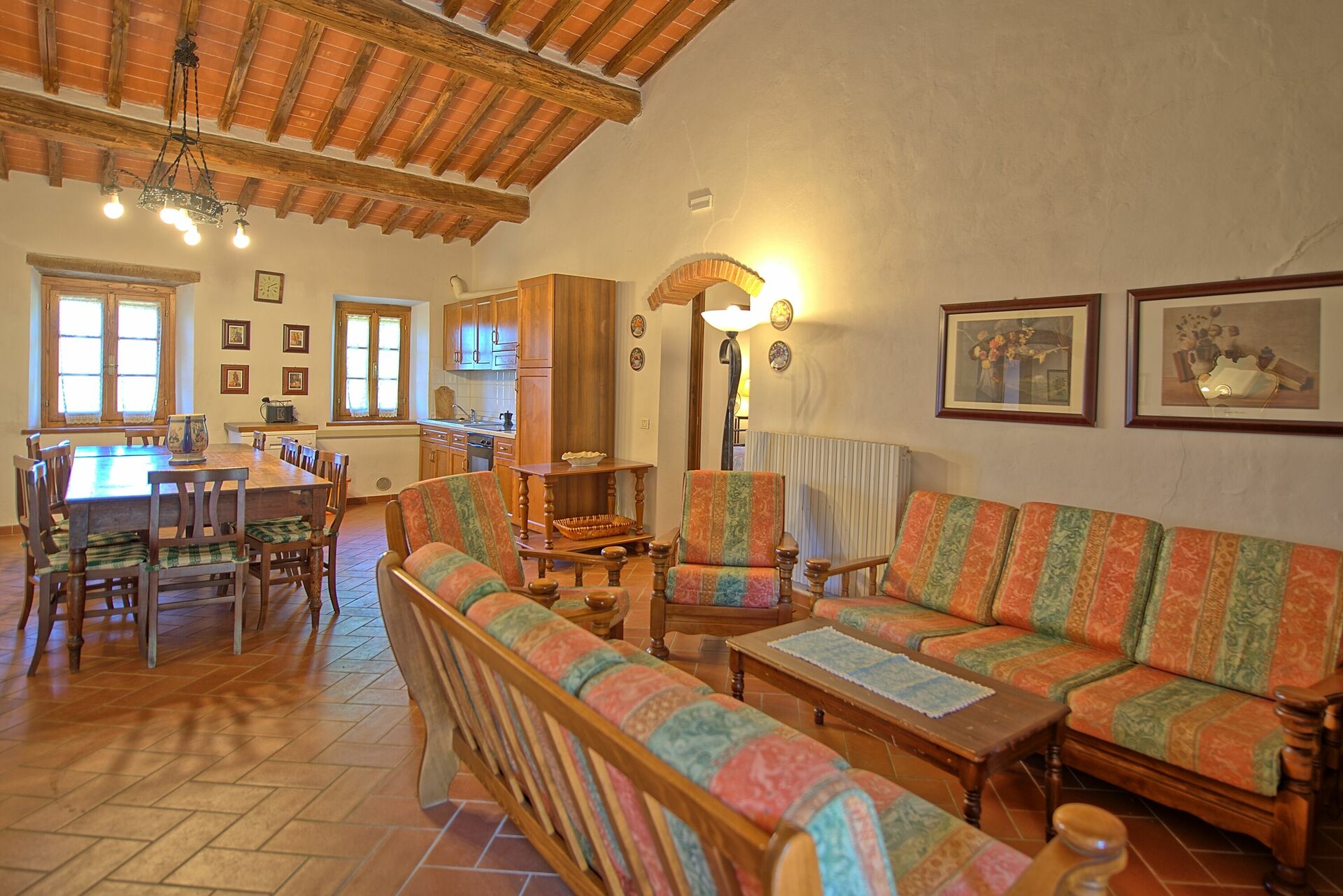Dette typiske toscanske landsted med 6 soveværelser og 4 badeværelser ligger mellem bakkerne i Chianti og Arezzo, med en fantastisk udsigt over skoven, markerne og de omkringliggende vinmarker.