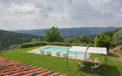 Meget smuk, hyggeligt bondehus "La Piaggia", 350 meter over havets overflade, fritstående, renoveret i 2000. 25 km fra bymidten af Arezzo, 50 km fra centrum af Siena, isoleret, rolig beliggenhed på en bakke. Til alene benyttelse: have 900 m2 (indhegnet), pool (5 x 10 m, 140 - 250 cm dyb, Sæsonbestemt tilgængelighed: 27.Apr. - 12.Okt.). Udendørs brus, havemøbler, grill. Opvarmningen betales lokalt, opvarme kun tilgængelig fra 01.Nov. - 07.Apr.. Tilkørsel til til huset (2.5 km natursti). Parkeringsplads på grunden. Indkøbsforretning 5 km, fødevarebutik 5 km, supermarked 12 km, restaurant 5 km, busstoppested 5 km, varmtvandsbad "Rapolano Terme" 30 km. Tennis 20 km, ridehal 15 km. Nærliggende attraktioner: Civitella in Val di Chiana 5 km, Monte San Savino 16 km, Castelnuovo Berardenga 28 km, Rapolano Terme 30 km, Gaiole in Chianti 40 km.