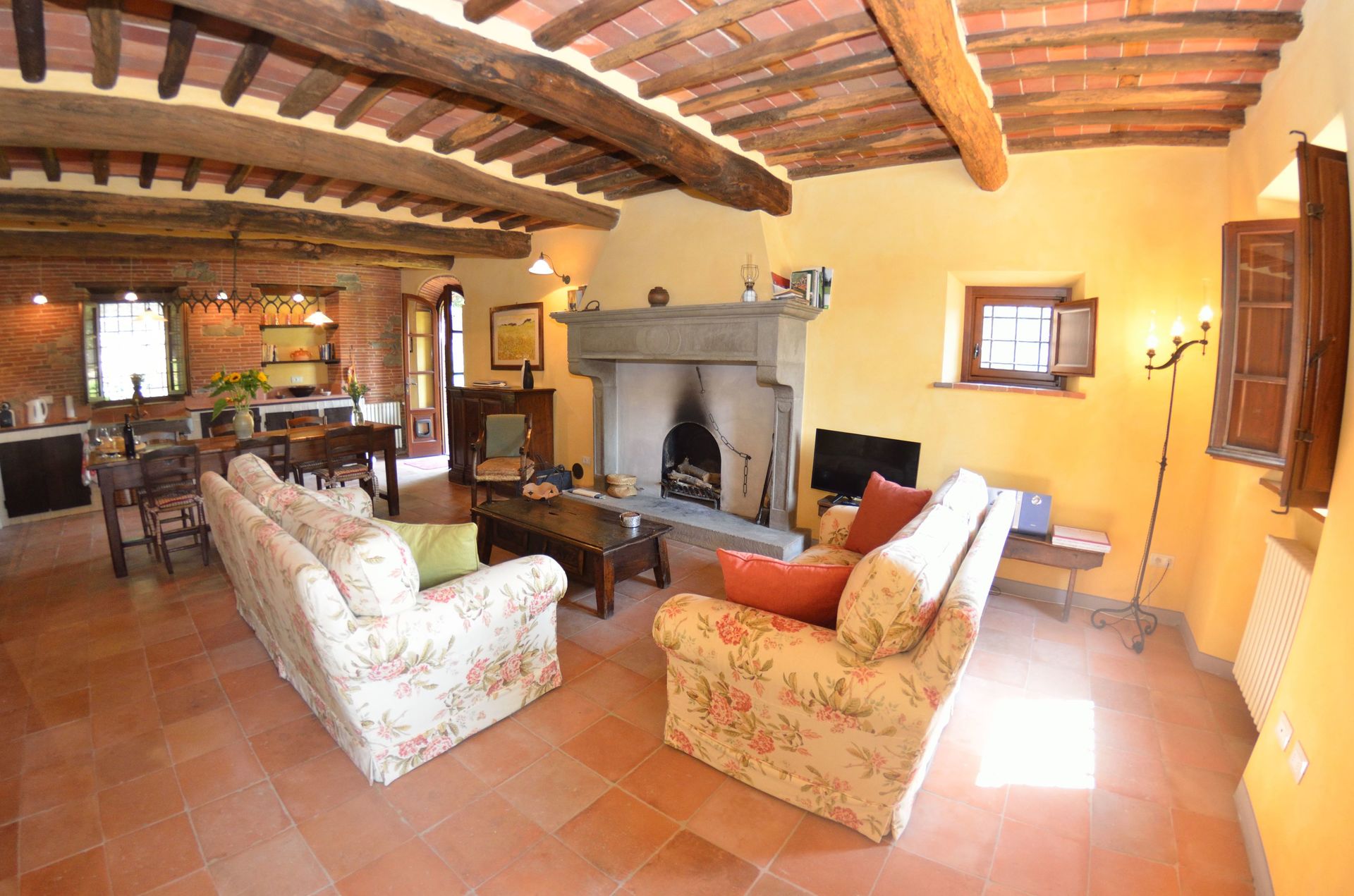 The holiday home is located on the smooth hills of Montecarlo, where vineyards and olive groves extend until the horizon; the landscape transforms and changes into colours of the different seasons.