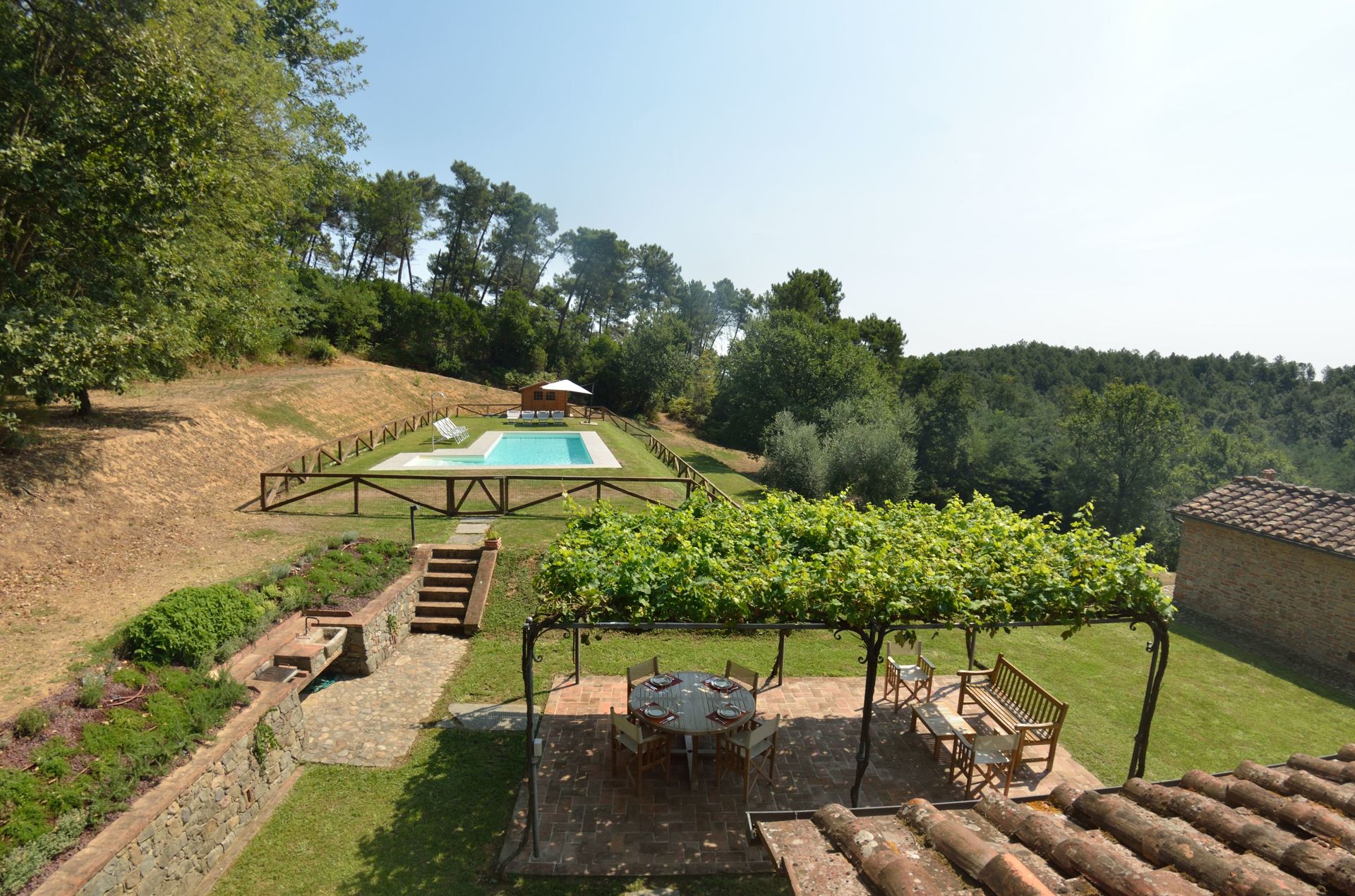Ved ankomst til L'incanto vil I finde en skøn ren og velholdt ejendom ideel til en fredelig ferie i Toscana. Til jeres store glæde vil I finde en privat pool, hvor I kan slappe af, mens I nyder en dejlig kold drik efter en travl dag med shopping. Hvis I nyder at lave mad til familie og venner så er der et veludstyret køkken inkluderet kaffemaskine, mikroovn, brødrister, komfur og køleskab, samt, , samt masser af service og bestik til op til otte personer. Hvis I foretrækker at spise 'al fresco', er der en fuldt møbleret veranda, hvor I kan nyde vejret, mens I spiser udendørs.