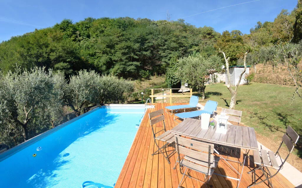 Fonticchio is a little, characteristic stone e cottage, built in typical Tuscan style, which is set amidst complete nature, on the hills between Lucca and the sea. The house is completely independent and located on a quiet spot; it disposes of a huge private garden of about 1’000 sqm and a swimming pool set out of the earth (7.32m x 3.66m, depth: 1.30m) which is at the exclusive use of the guests.