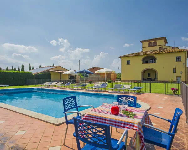 Beliggende i det solrige toscanske landskab ved Monte San Savino i Italien er denne smukt restaurerede landsbygård med sit karakteristiske dueslåg en eksklusiv villa, der tilbyder et autentisk landeligt tilflugtssted. Oprindeligt bygget i 1814 og omhyggeligt renoveret ligger ejendommen på en stor 6 hektar stor ejendom omgivet af bølgende enge og gyldne solsikkemarker, som fremkalder det tidløse præg af en historisk bolig. Interiøret er fyldt med autentisk karakter med et rummeligt stuerum med pejs, et stort spisebord, terrakottafliser og høje bjælkelofter, der vidner om bygningens rige historie. Gæster mødes af fuldstændig afskilthed, da ejendommen er omgivet af automatiske porte og nyder total privatliv, da det tilstødende anneks ikke er beregnet til boligformål. En indhegnet have på 2.000 m2 med velholdt græsplæne giver rigeligt plads til udendørs aktiviteter, mens den indhegnede swimmingpool på 6 x 12 m med en dybde på 120 til 230 cm indbyder til afslapning i den sæsonbestemte periode fra 6. april til 5. oktober. Parkering er tilgængelig på ejendommen, og højhastighedsinternet wifi sikrer, at gæster, der har behov for at være forbundne, nemt kan gøre det gennem hele deres ophold.