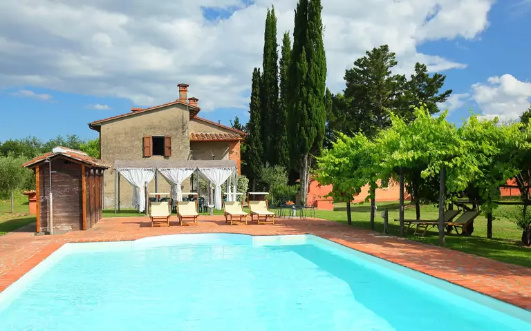 Gammelt bondehus "Campolacconi", renoveret, omgivet af marker. 3 km fra bymidten af Loro Ciuffenna. Til medbenyttelse: grund 5 ha, frugthave. Til alene benyttelse: pool (6 x 14 m, 120 - 150 cm dyb, Sæsonbestemt tilgængelighed: 02.Maj. - 10.Okt.) med indetrappe. Udendørs brus, terrasse, havemøbler, grill. I huset: med tv, vaskemaskine. Tilkørsel (1.8 km natursti). Indkøbsforretning 3 km, busstoppested 2 km, togstation "Montevarchi" 10 km, varmtvandsbad "Rapolano" 55 km. Golfbane 30 km, tennis 3 km, ridehal 5 km. Nærliggende attraktioner: Gaiole in Chianti 30 km, Greve in Chianti 38 km, Arezzo 42 km, Siena 55 km, Firenze 55 km.