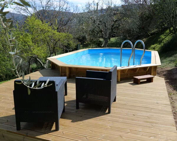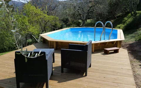 De udendørs områder på 'Il Casale' er omhyggeligt arrangeret for at udnytte ejendommens ophøjede position og dens fantastiske naturlige omgivelser optimalt. Den private have er et absolut højdepunkt, fyldt med et rigt udvalg af blomster og træer, der skaber en farverig og duftende atmosfære gennem alle årstider. En overjordisk swimmingpool er tilgængelig sæsonmæssigt fra den 31. maj til den 30. september og tilbyder en forfriskende flugt i sommerens varme. Beskygget af en charmerende løvgang giver det udendørs område et køligt og behageligt rum til at slappe af på varme eftermiddage. Havestole er tilgængelige til din brug, så du kan spise, læse eller blot nyde de panoramiske udsigter over Farma-dalen og det tætte skovland, der strækker sig hen over horisonten. En grill står også til din rådighed, hvilket gør udendørs spisning til en naturlig og behagelig del af dit ophold.