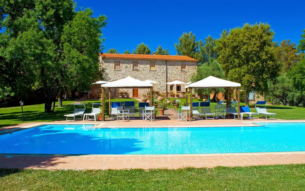 Landsted "Formula". 3 km fra havet. Til medbenyttelse: pool (7 x 14 m, Sæsonbestemt tilgængelighed: 08.Apr. - 18.Okt.) med indentrappe. Udendørs brus, grill. Til alene benyttelse: havemøbler. I huset: trådløs LAN [WLAN], vaskemaskine (til medbenyttelse, ekstra), cykler på stedet (ekstra). Tilkørsel til til huset (1 km natursti). Parkeringsplads ved huset. Indkøbsforretning 2 km, supermarked 2 km, restaurant 3 km, busstoppested 1.5 km, togstation "Follonica" 2 km. Golfbane 18 km, tennis 2 km, ridehal 5 km, vandrestier fra huset 50 m.
