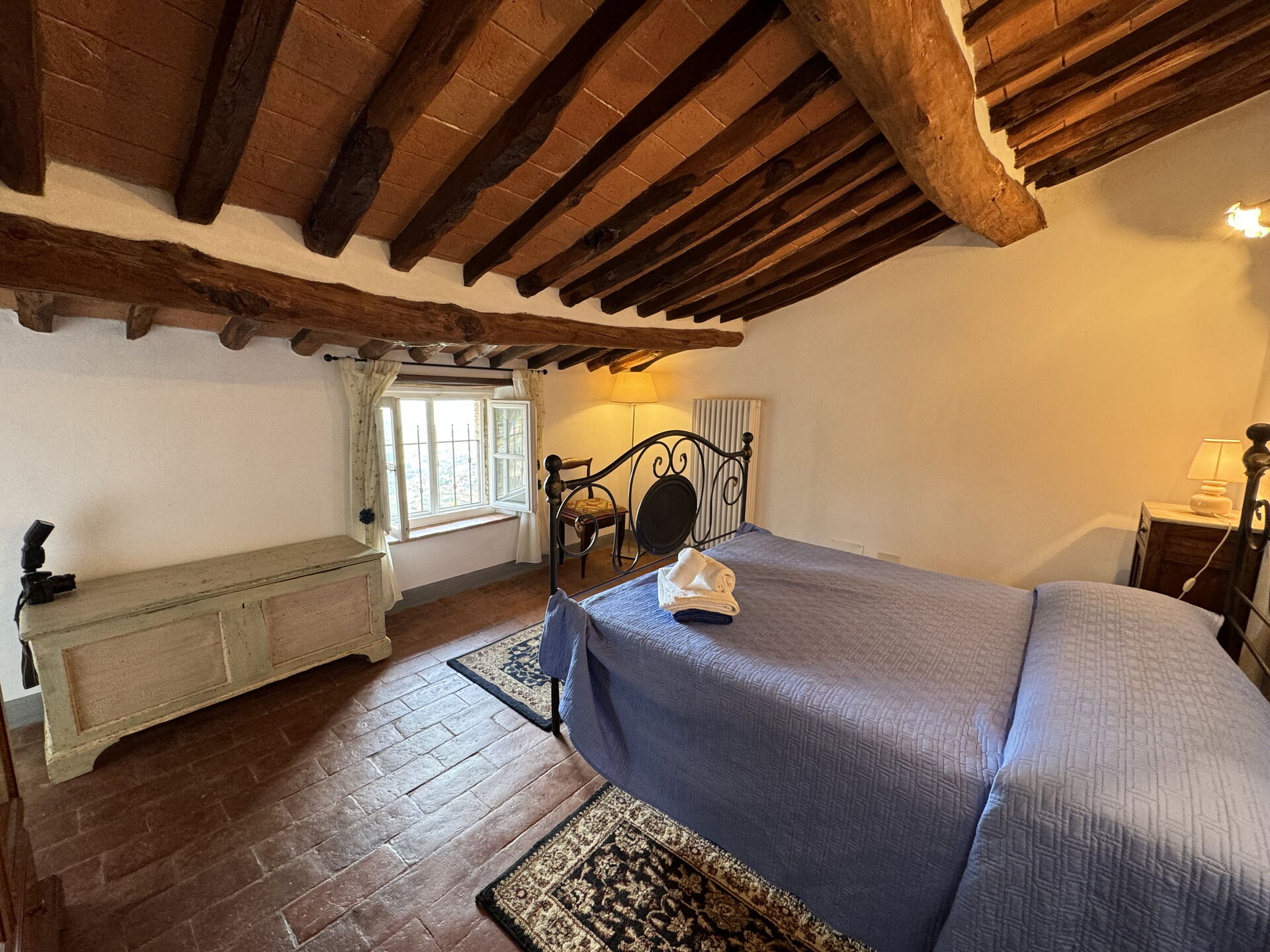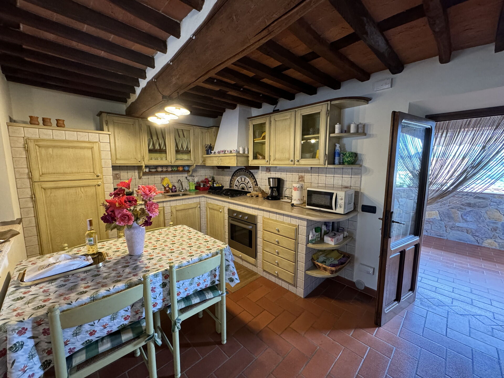 Når I ankommer, til Casa Max vil I finde en dejlig ren og velholdt ejendom med udsigt over bakkerne perfekt til en afslappende ferie i Toscana. Efter en hektisk dag med sightseeing, er det dejligt at nyde lidt tid med venner og familie ved kanten af poolen med et glas vin - det er en perfekt måde at køle ned på sidst på dagen. At nyde et måltid med venner og familie er en kæmpe del af den toskanske kultur. Benyt køkkenet til madlavning med lokale produkter, når du er på ferie. Køkkenet indeholder kaffemaskine, mikroovn, brødrister, komfur og køleskab, samt, masser af service og bestik til op til seks personer. Spis 'al fresco' som en ægte toskaner. Den fuldt møblerede terrasse er det ideele sted for at nyde sit måltid, familien og det fine toskanske vejr.