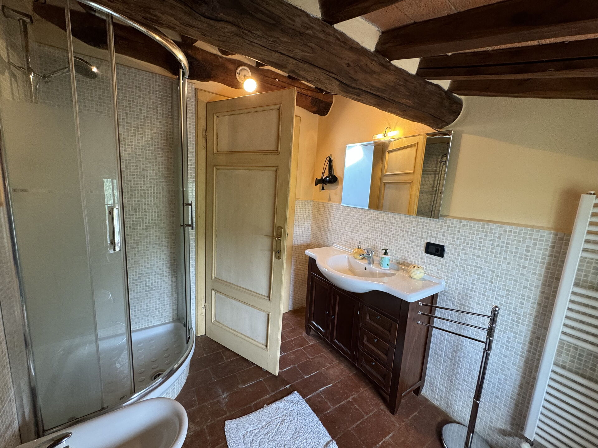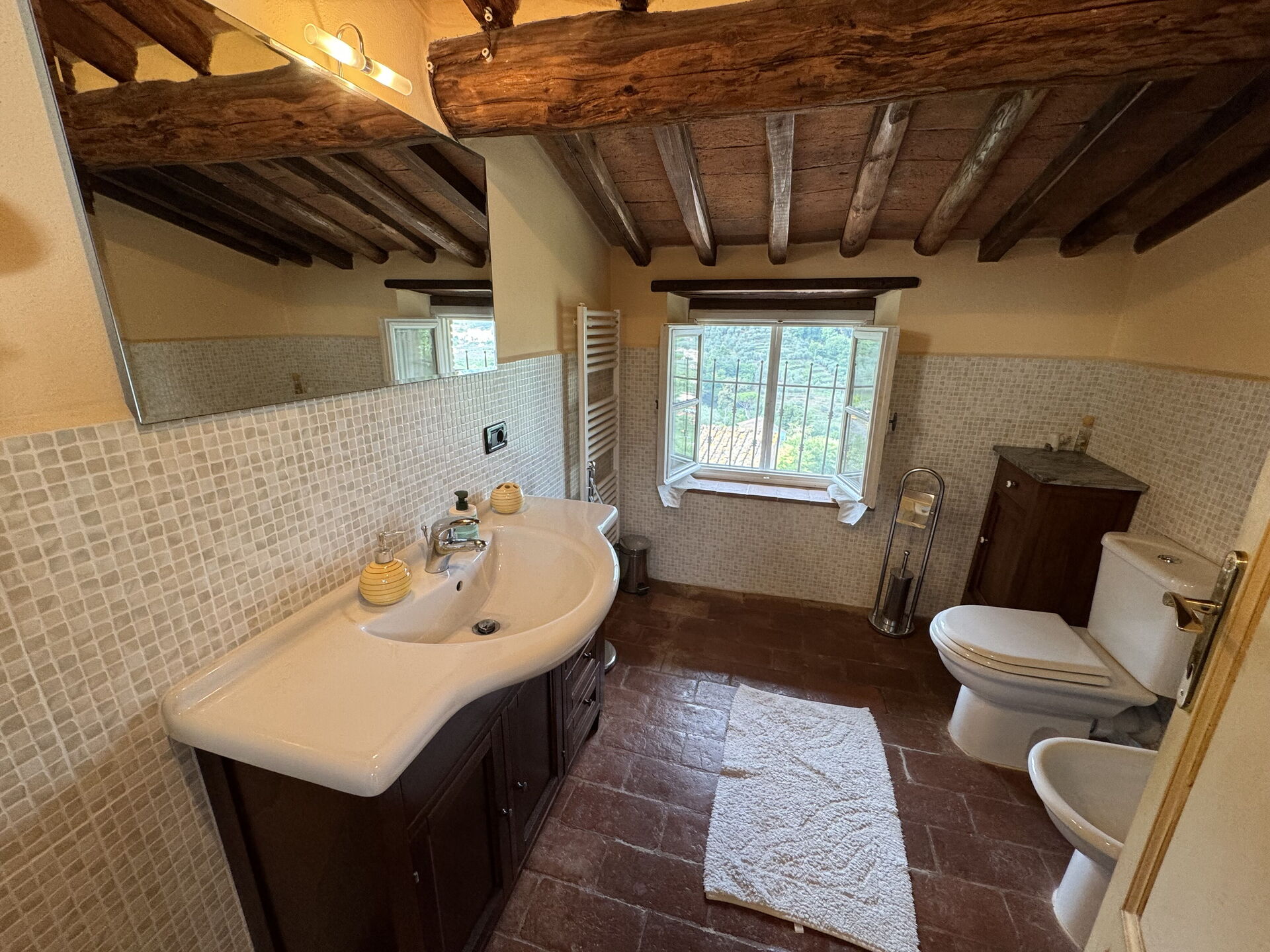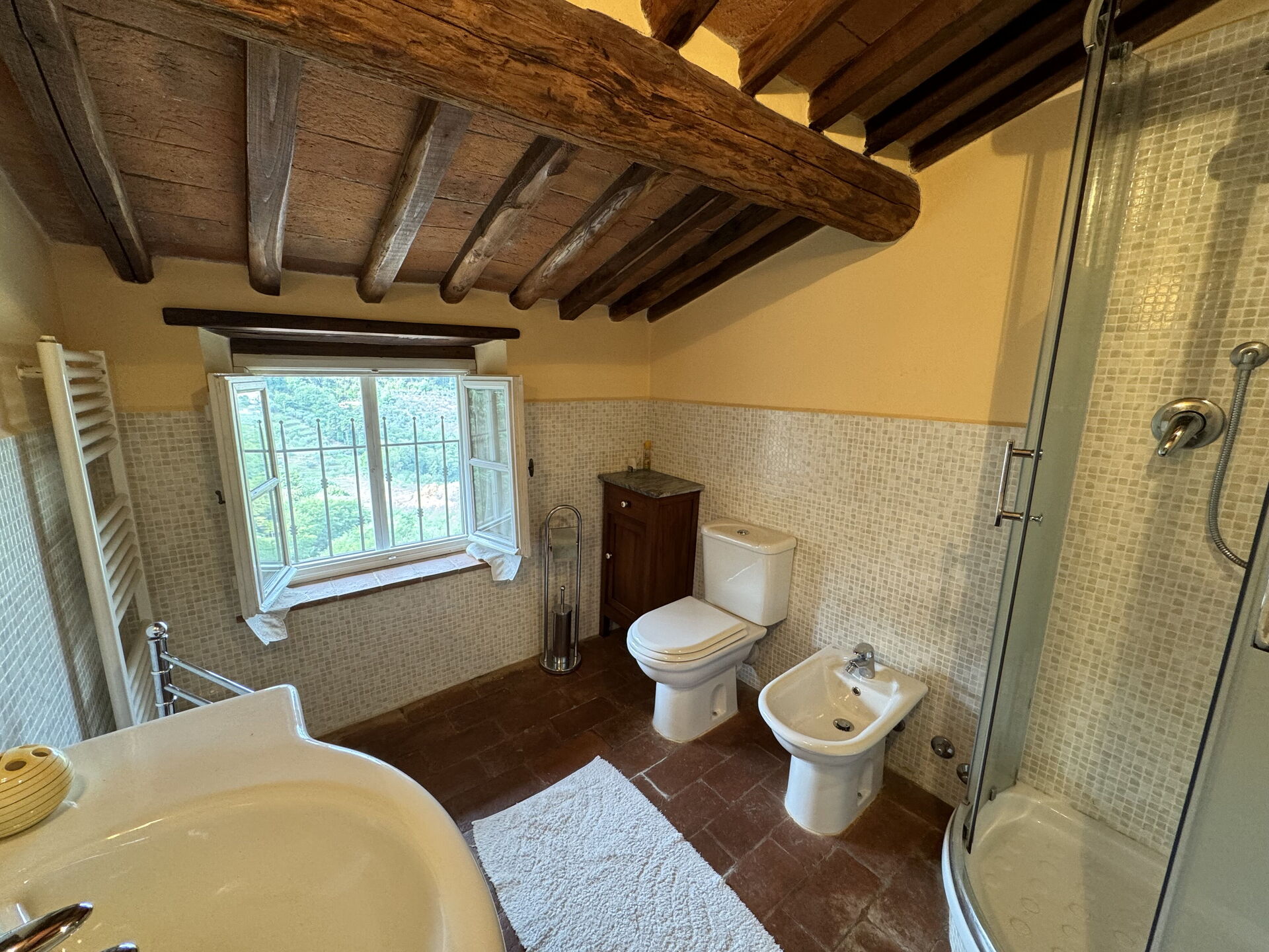 Badeværelse: vask, wc, bidet, bruser.