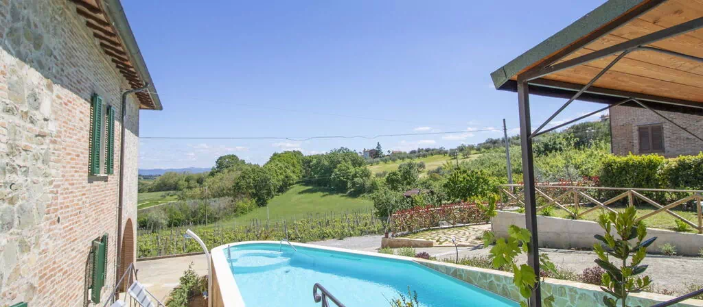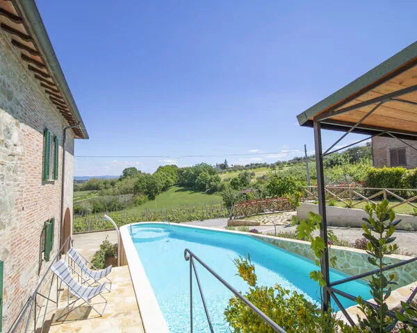 Villaen "Olimpia" ligger i den charmerende landsby Poggio Del Papa på toppen af en solrig bakke, blot 12 km fra centrum af Castiglione Del Lago og uden for feriestedet Vaiano. Denne hyggelige og komfortable villa er placeret inden for en privat indhegnet grund på 800 m², hvilket giver rigeligt plads til afslapning og udendørs nydelse i fuldstændig privatliv. Ejendommen kombinerer fredelige landlige omgivelser med et bredt udvalg af faciliteter. En privat kantet svømmepøl på 12 x 5 meter med en dybde på 100 til 150 cm udgør midtpunktet for det udendørs område.