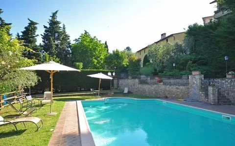 Accommodation in Chianti for luxury holidays. Farming estate producing wine and olive oil with a charming farmhouse situated in a small luxury hamlet of houses in panoramic and quiet location amidst the hills surrounding Montespertoli, in Chianti. The farmhouse, is divided in a main building and the owner's house. In the complex there are 8 apartments set on different floors. The accommodations have been carefully restored and nicely furnished. Small pets are allowed.