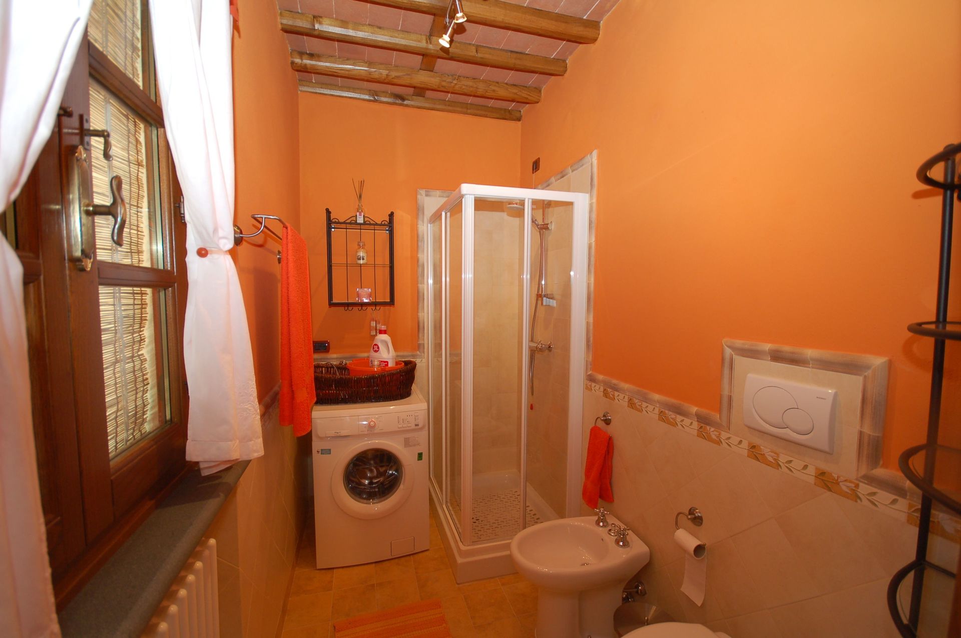 Badeværelse: vask, wc, bidet, bruser, vaskemaskine.