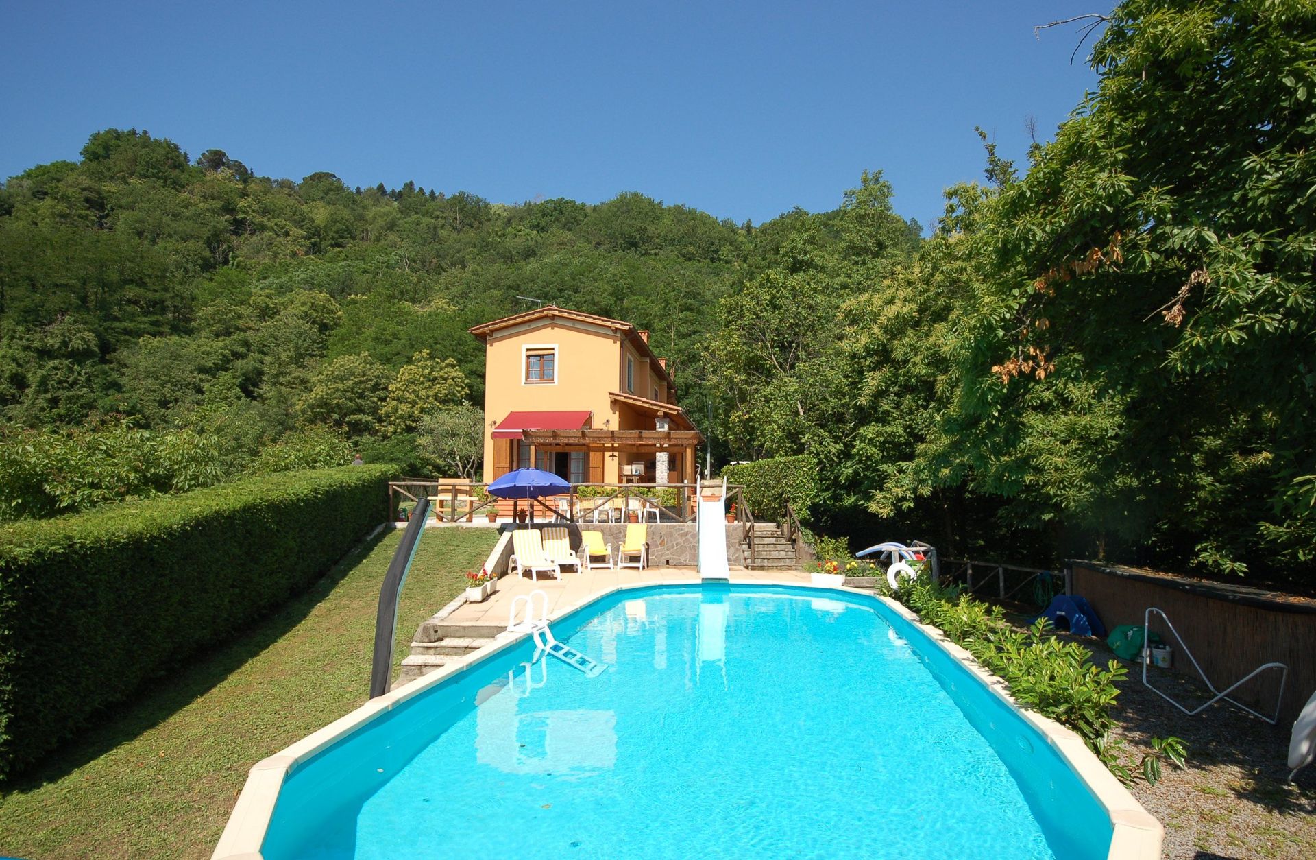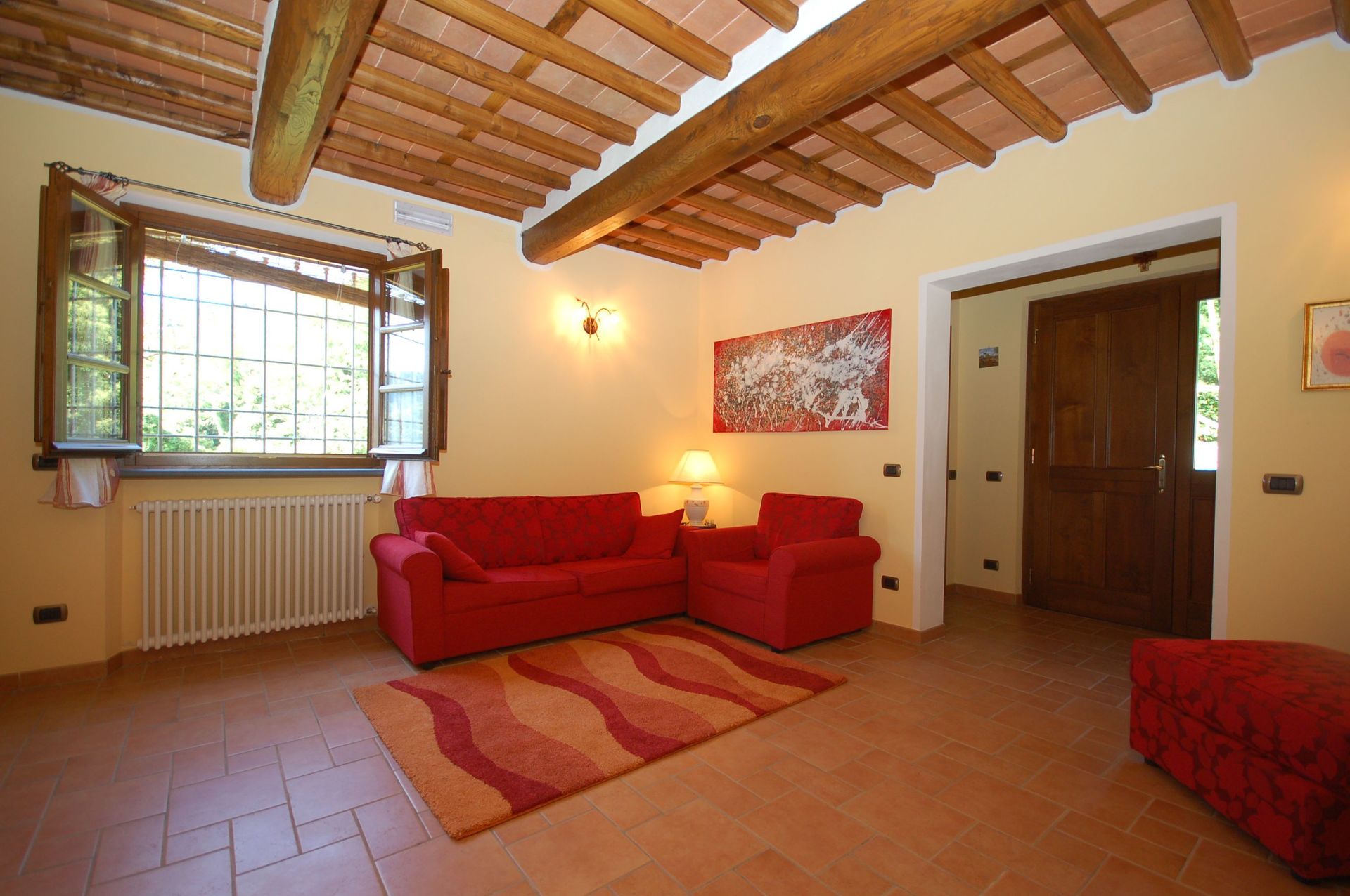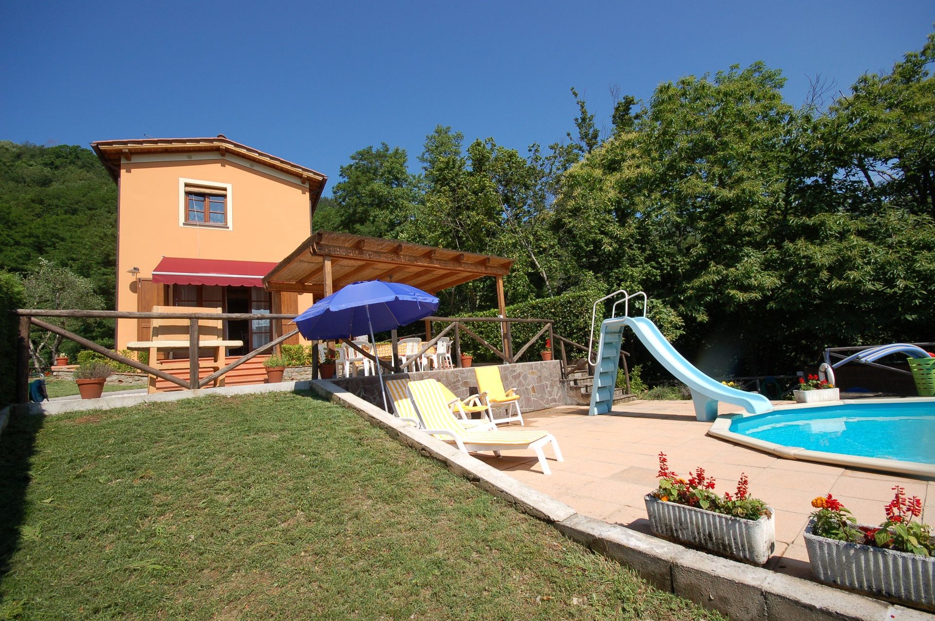 Ved ankomst til Casa Francesca vil I finde en fin ren og velholdt ejendom med udsigt over bjergene ideel til en rolig ferie i Toscana. Til jeres store glæde vil I finde en privat pool, hvor I kan køle ned, mens I nyder en dejlig kold drik efter en hektisk dag med sightseeing. Udenfor vil I også finde legeplads og barbecue. Der er et køkken inkluderet kaffemaskine, mikroovn, brødrister, komfur og køleskab, samt, , samt masser af service og bestik til op til otte personer. Hvis I foretrækker at spise 'al fresco', er der en fuldt møbleret veranda, hvor I kan nyde vejret, mens I spiser udendørs.